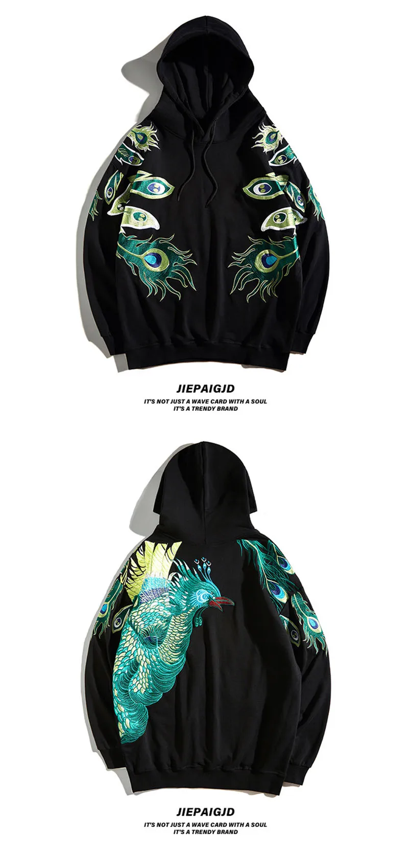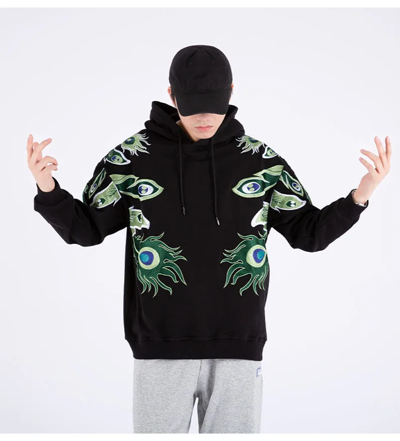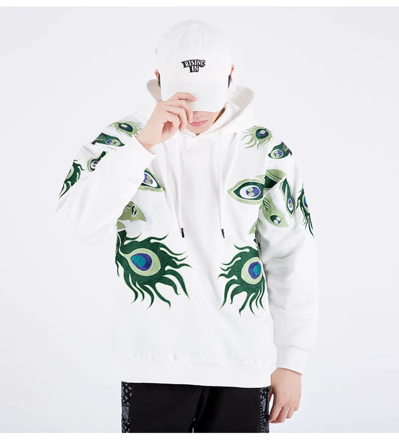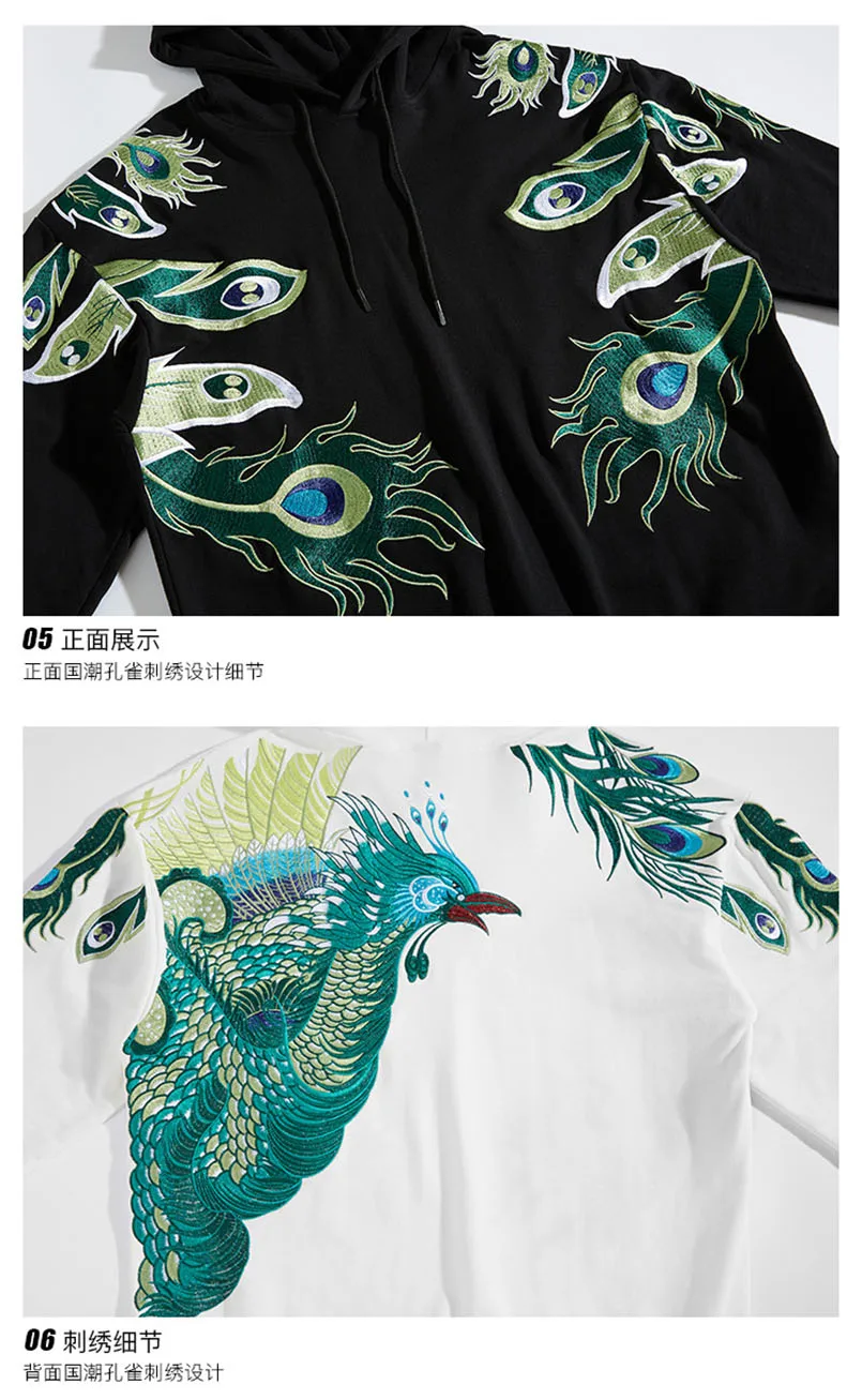 Мужская толстовка с вышивкой павлина и шляпой хип-хоп, большие размеры, Sukajan, толстовки, Японская уличная одежда, мужские джемперы, свитшоты, осень 2021