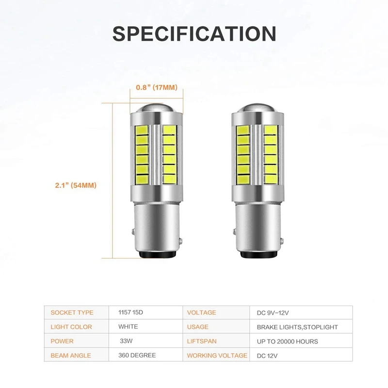 (Set of 2) BAY15D 1157 Led Light bulbs equipped with 33 pieces high quality 5730 Chipsets. 360 degree full angle illumination with projector lens design, it is a good choice for better light output.