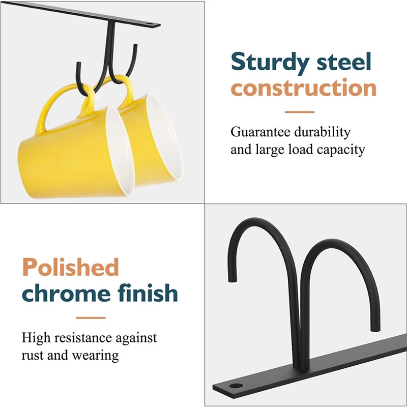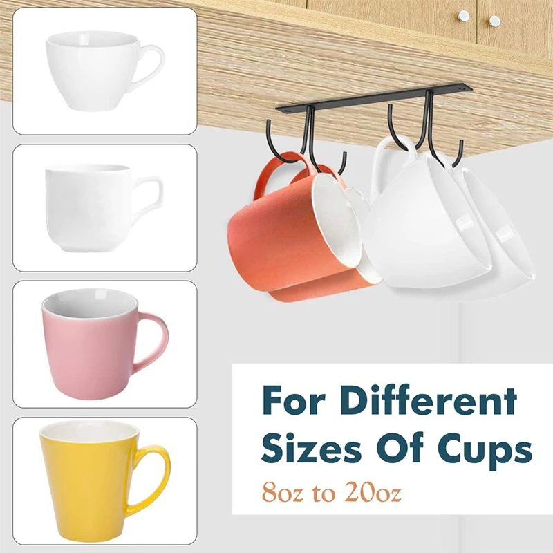 Многофункциональная вешалка под шкафом: держатель чашки может держать различные кухонные аксессуары, такие как чашки, кофейные чашки, посуда, салфетки, перчатки, лопатки и кисти. Они будут вашими хорошими кухонными помощниками и имеют хорошую несущую способность.