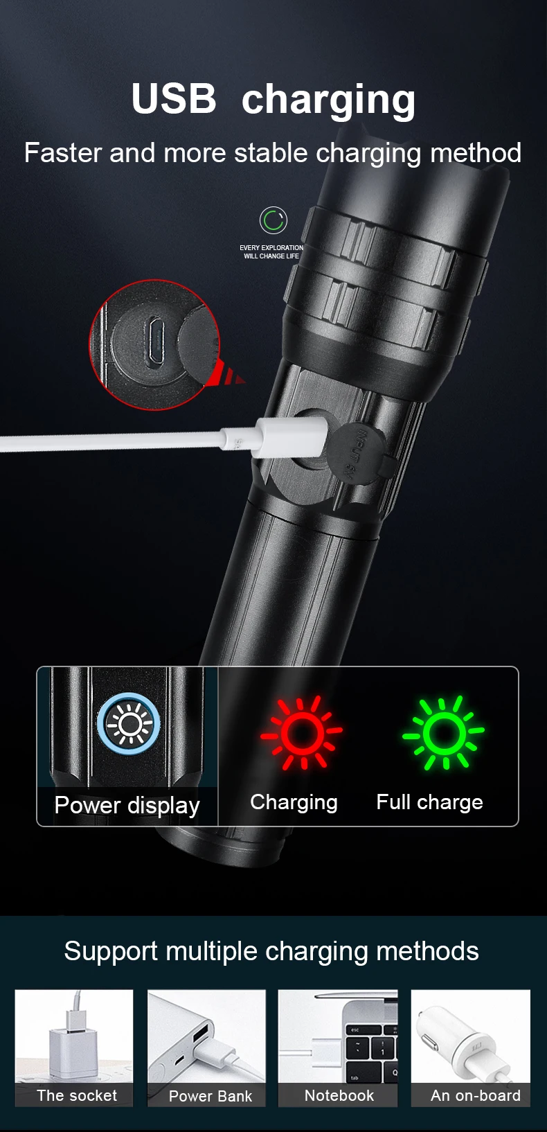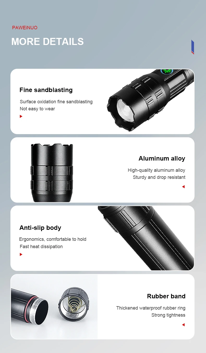 Изысканный фонарик подходит для всех, кто любит фонарик. Его можно легко положить в карман и рюкзак, что удобно для вас носить с собой. Маленький корпус обладает мощной энергией, подходит для ночной охоты, кемпинга, альпинизма, рыбалки и езды на велосипеде.