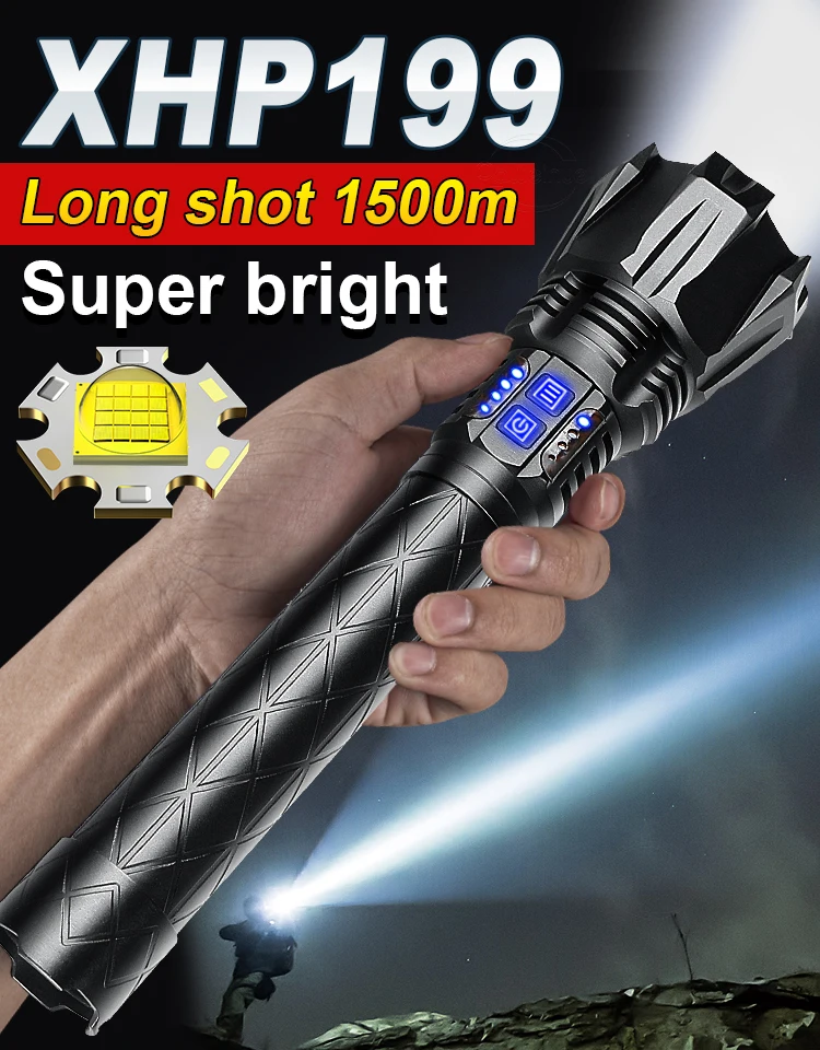 > Новейший умный XHP199 мощный фонарик перезаряжаемый супер зверь фонарик <