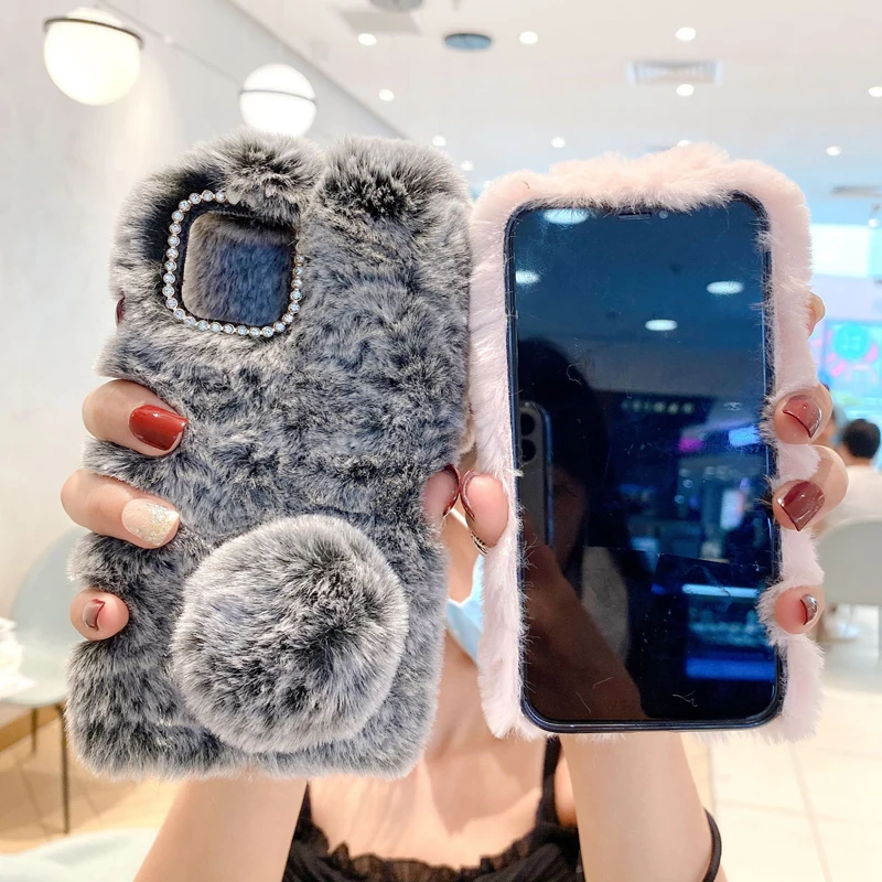 Мобильный телефон чехол для iPhone 13 12 Pro 8 7 6 S Plus 11 Pro XS Max XR X 13 мини заячьи уши меховой плюшевый защитный чехол