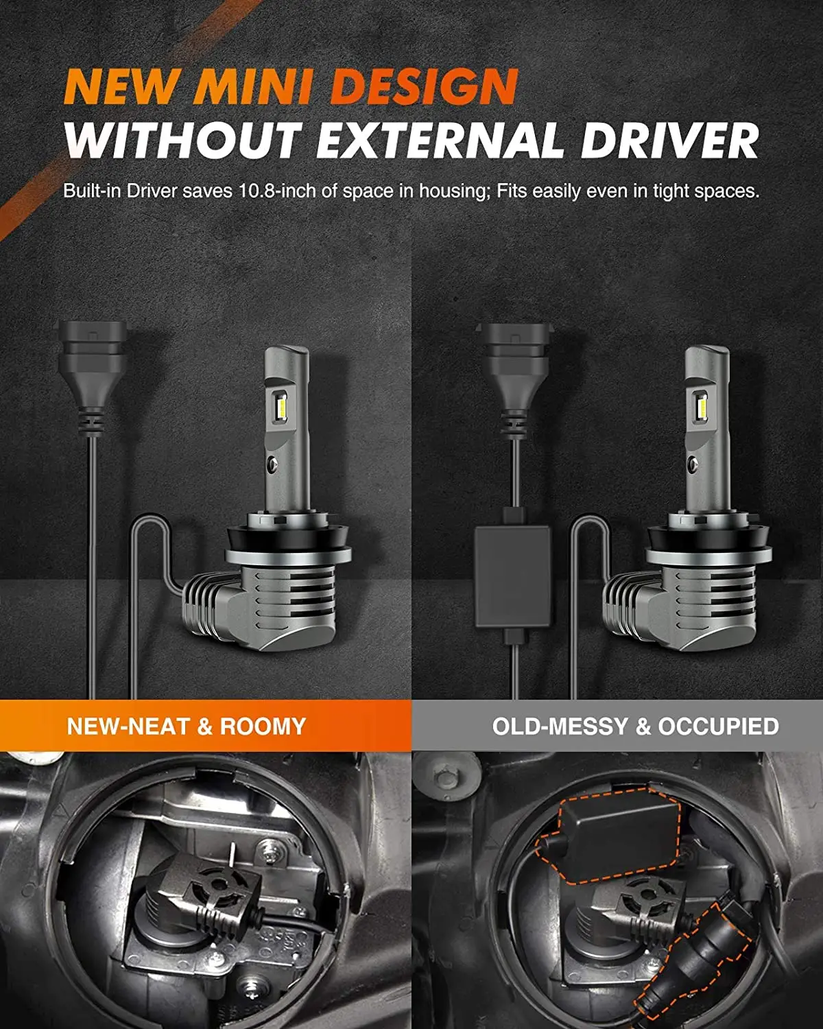 5 минут простая установка: почти 1:1 мини-дизайн такой же, как и галоген. Нет внешнего драйвера или разъема. Без каких-либо изменений. Не требуется никаких инструментов для замены светодиодной лампы S2. Просто подключи и работай.