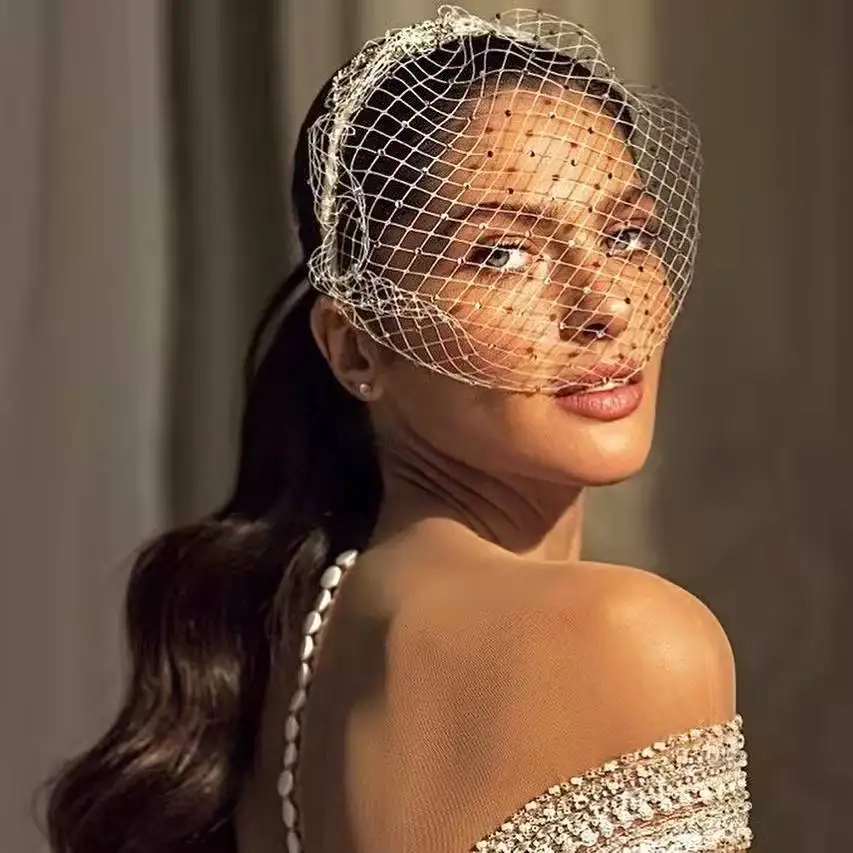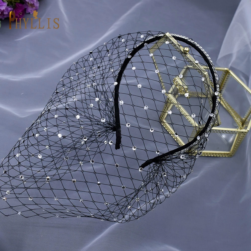 JM19 белый черный головной убор вуаль для невесты Кристалл Клетка для лица маска из сетки шикарные белые стразы обруч для волос головная повязка вуаль для лица вуаль