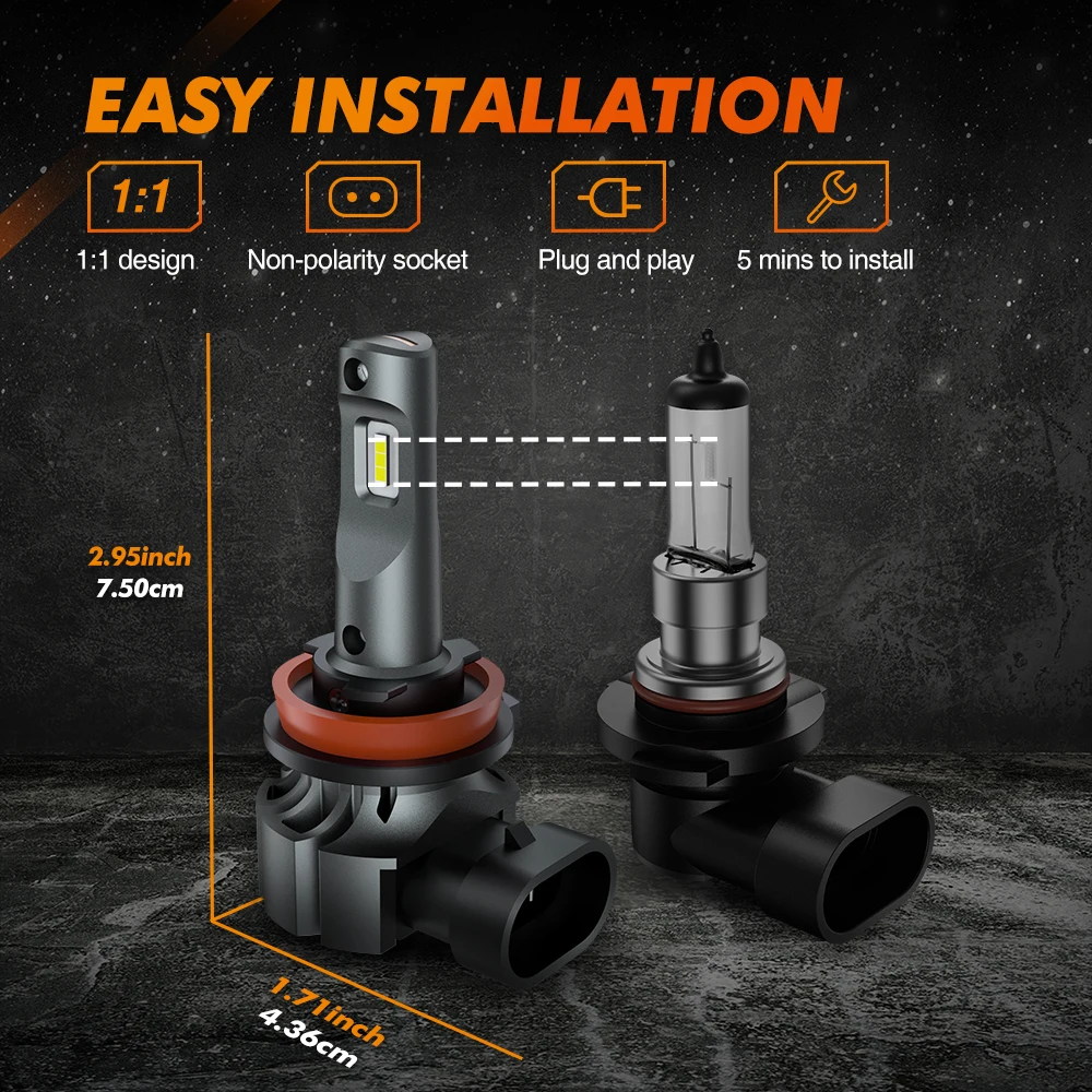 3. Подключи и работай: 1:1 дизайн с галогенной лампой, неполярность, нет необходимости больше модификации или переворачивания, вы можете легко установить в течение 5 минут