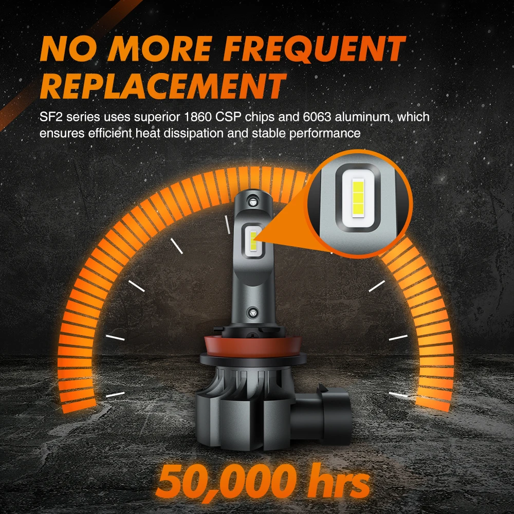 1. SF2 Серия использует улучшенную 1860 светодиоды с чипом CSP и 6063 алюминия, что обеспечивает эффективную рассеивания тепла и стабильная производительность, высокий светильник выход и меньше потребеление энергии, срок службы более 50000 часов