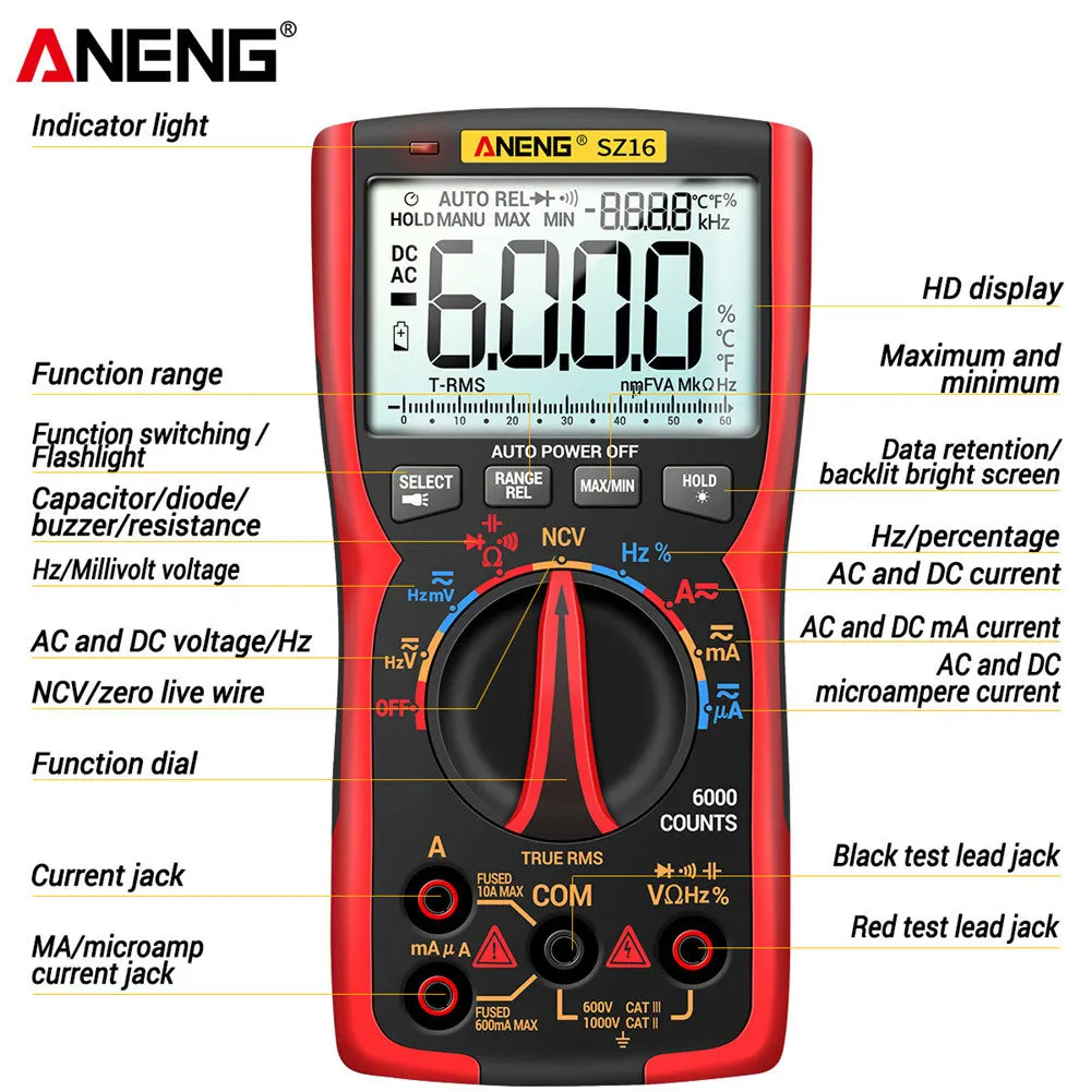 Цифровой мультиметр ANENG SZ16 (аккумулятор в комплект не входит)-1 шт.