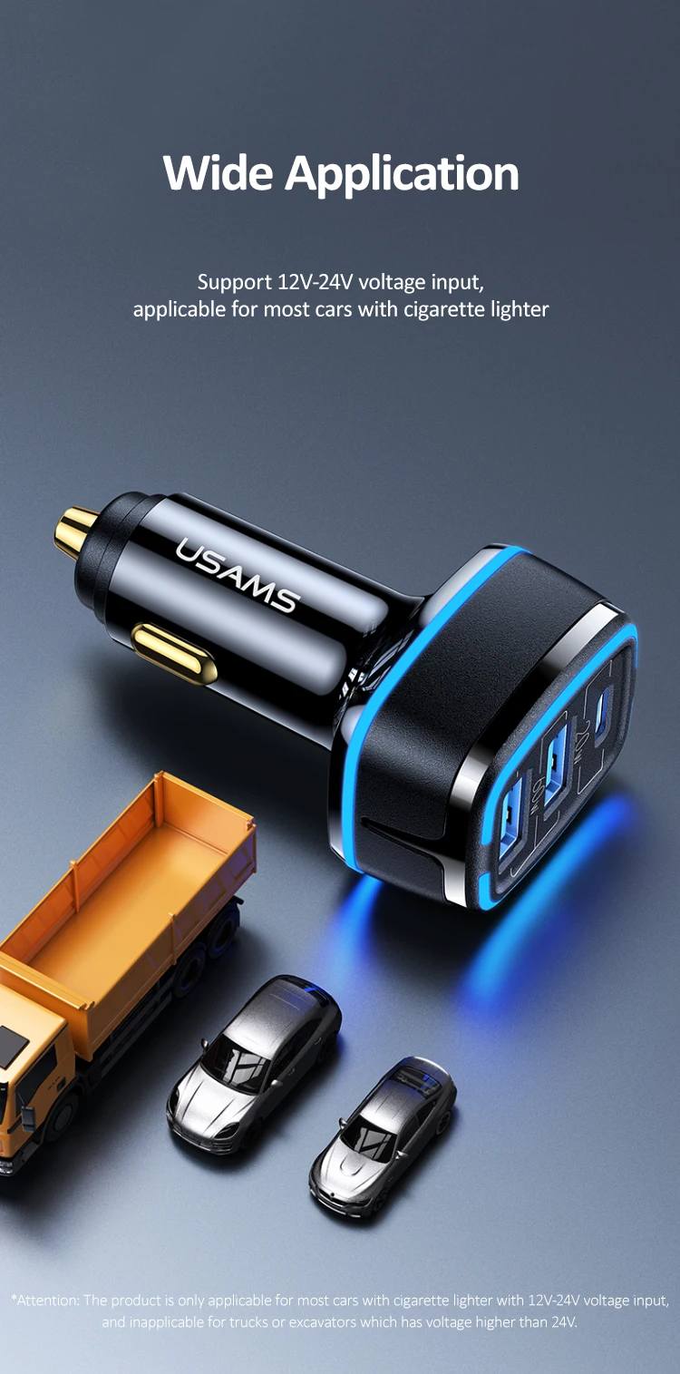 Продукт подходит только для большинства автомобилей с прикуривателем с входным напряжением 12-24 В и неприменим для грузовиков или экскаваторов, которые имеют напряжение выше 24 В.