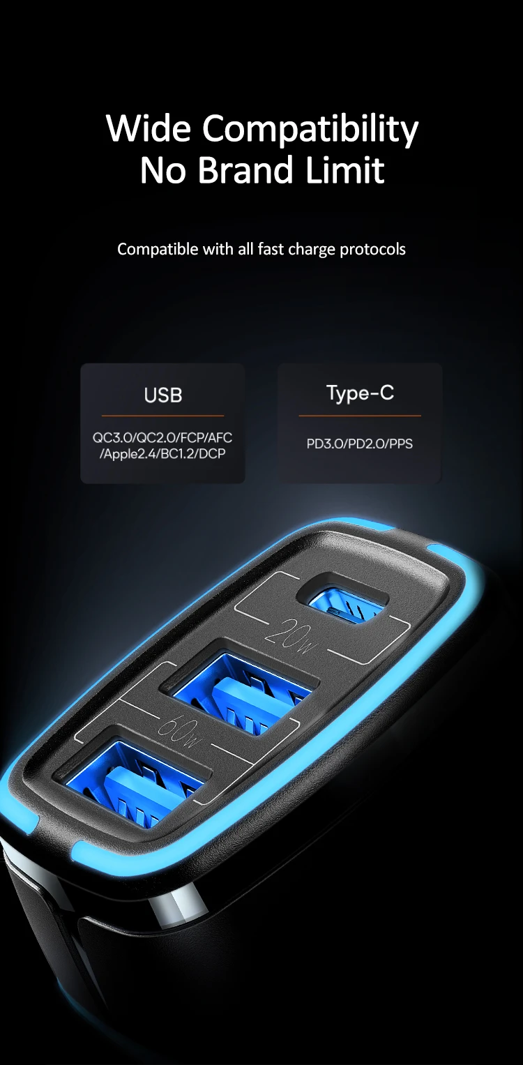 Название: C24 80W 3 порта быстрое автомобильное зарядное устройство