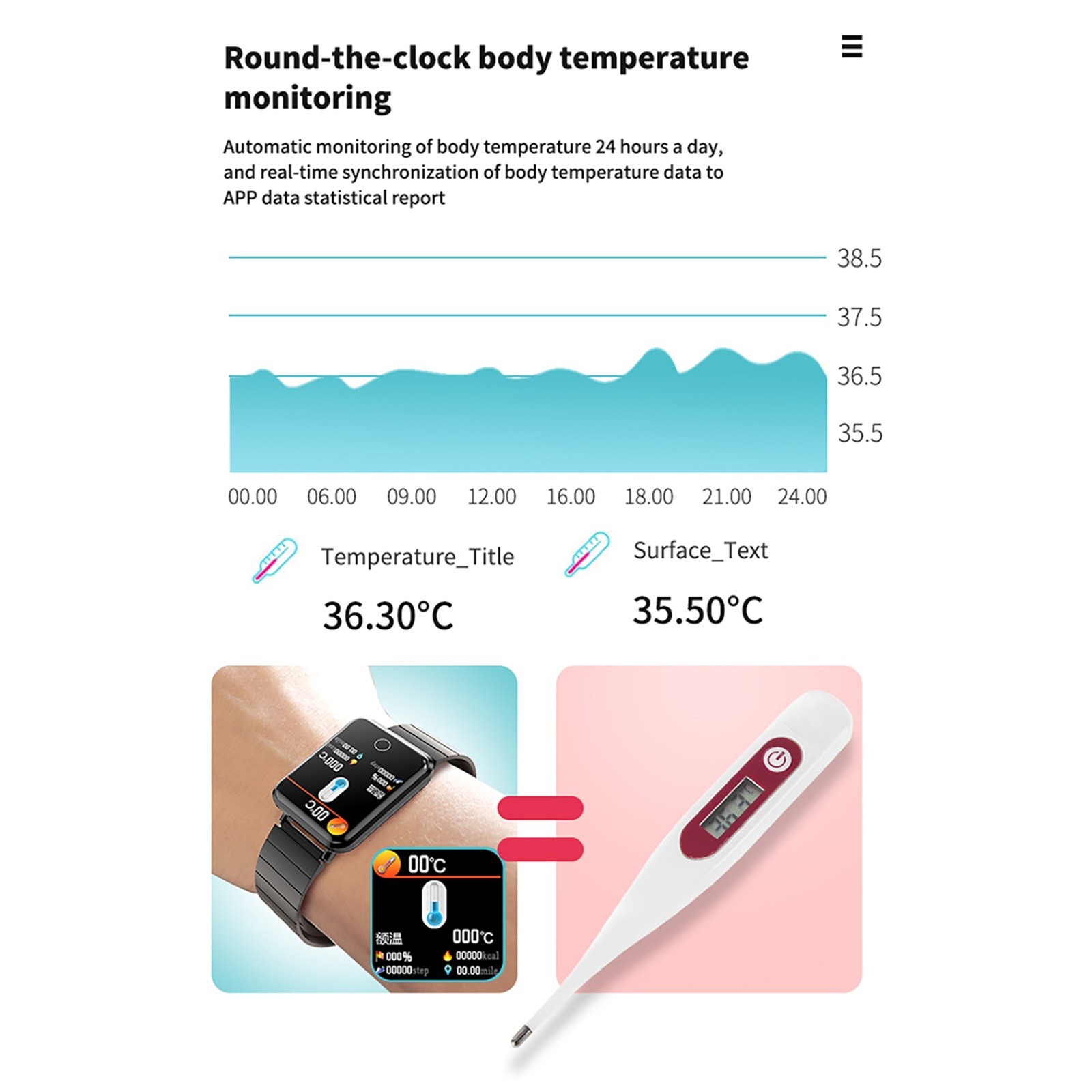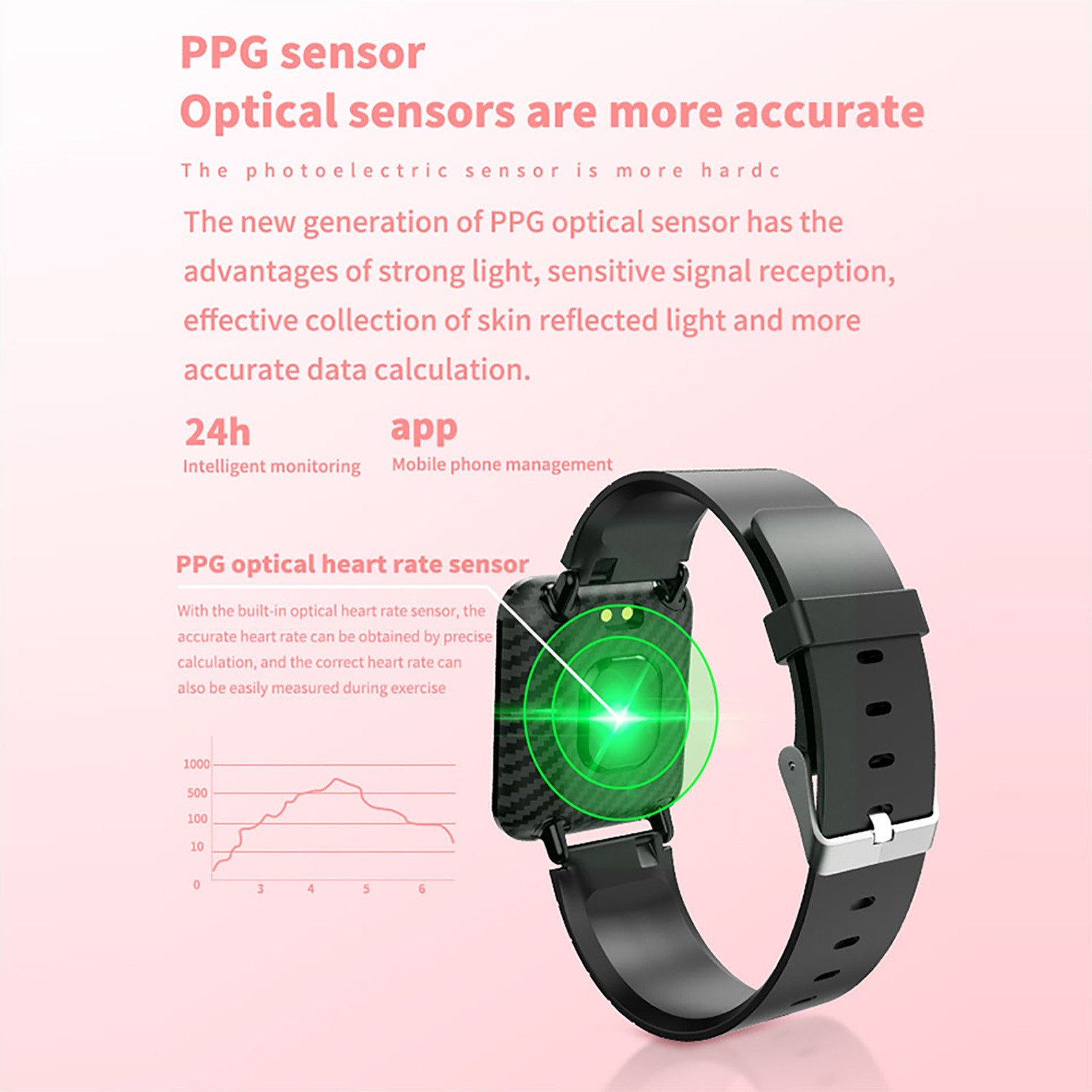 1. Большой 1,3 дюйма Цветной ЖК-экран с полным обзором, что позволяет вам работать больше Чутко без помех 2. Используйте запястье оптического сердца Датчик скорости для контроля сердечного ритма 24 часа в сутки 3. Температура тела Автоматически отслеживается 24 часа в сутки, и данные о температуре тела Синхронизируется с отчетом по данным приложения в реальном времени 4. Информация о сне Каждую ночь записывается подробно, и телефон может просматривать данные сна В любое время, чтобы помочь вам настроить привычки сна5. Мониторинг сердечного ритма в реальном времени, на ранней стадии Обнаружение чрезмерных упражнений