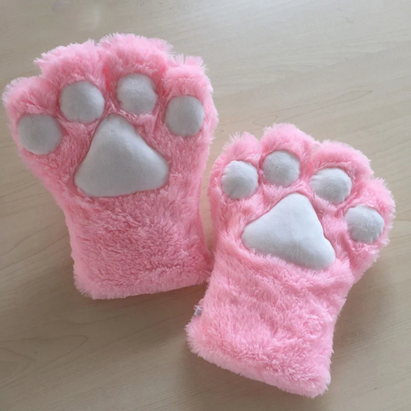 Милые пушистые зимние теплые перчатки с медвежонком, когтями из плюша, лапами и когтями для женщин, Рождество, Хэллоуин, искусственный мех, котенок, Лолита, косплей, варежки для девочек
