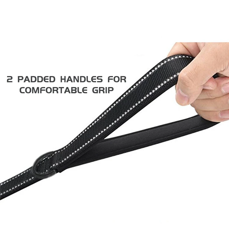Это двойной Светоотражающий Поводок для домашних животных. Дизайн с двойной ручкой, лучше путешествовать с домашними животными. Классический черный, красный и синий цвет, красивый и прочный. Двухслойный дизайн, удобный. Это необходимый поводок для собак для домашних животных.