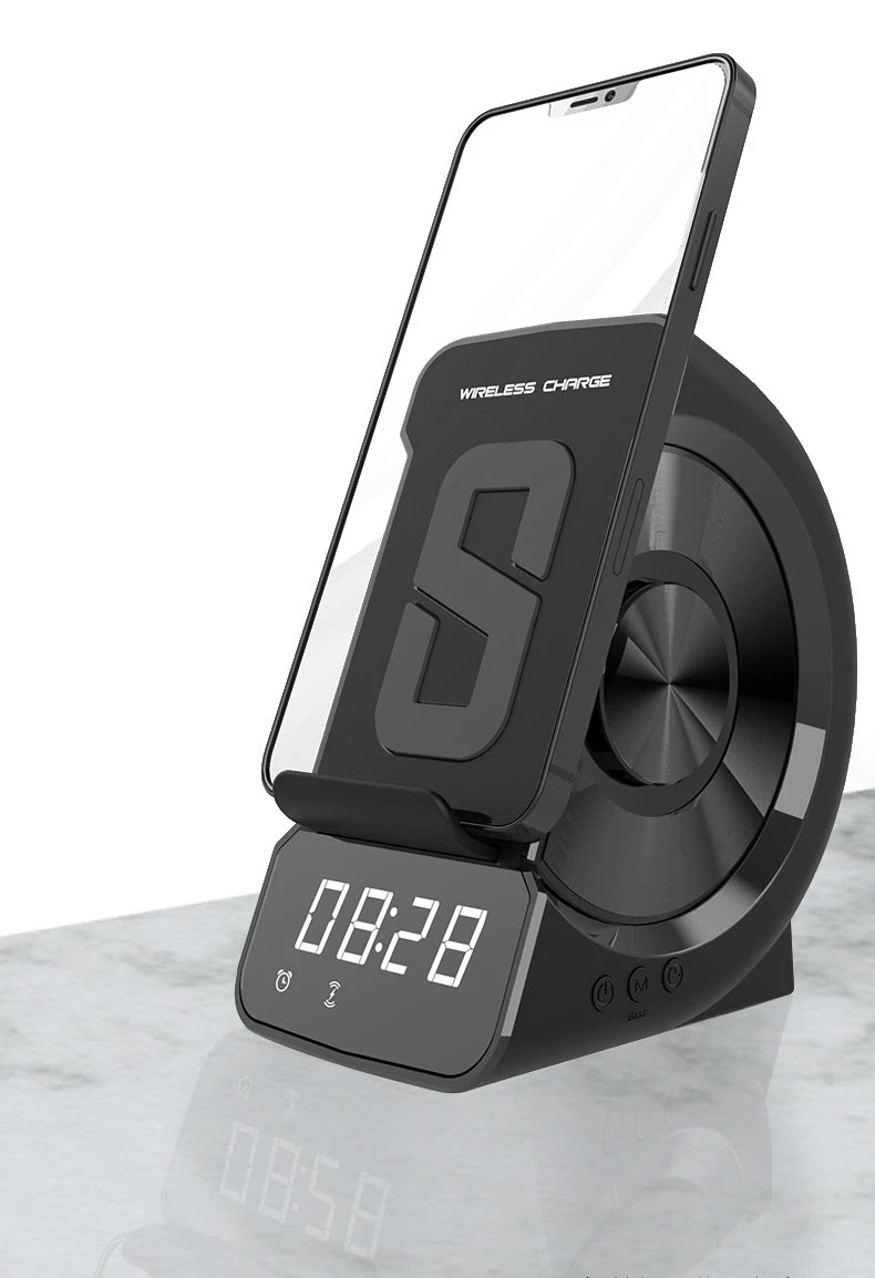 2. Беспроводная зарядка, проводная зарядка, Горизонтальная и вертикальная зарядка, Беспроводная Bluetooth -compitible, tf-карта, аудиовход, звонки без рук, зарядка через USB, fm-радио, цифровой дисплей часов, функция будильника, держатель на мобильный телефон