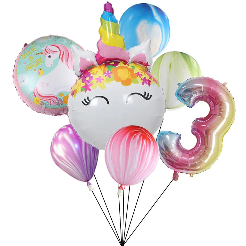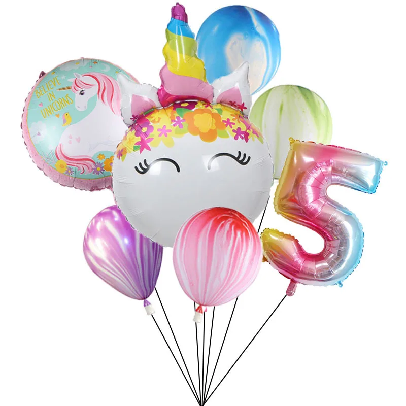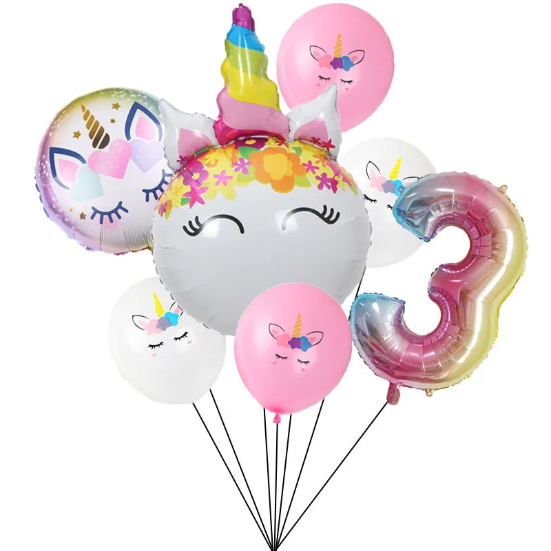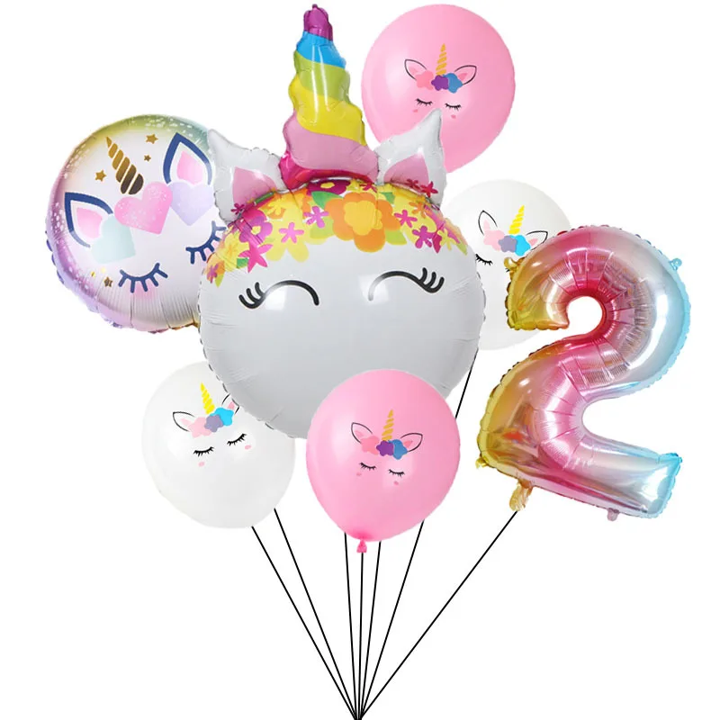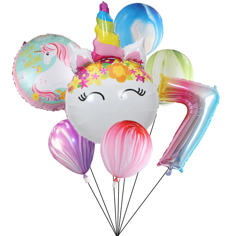7 шт./лот, воздушные шары с радужным единорогом, От 1 до 9 лет, фольга, цифры, воздушные шары, единорог, вечерние, для детей, день рождения, для детей, для душа, Globos