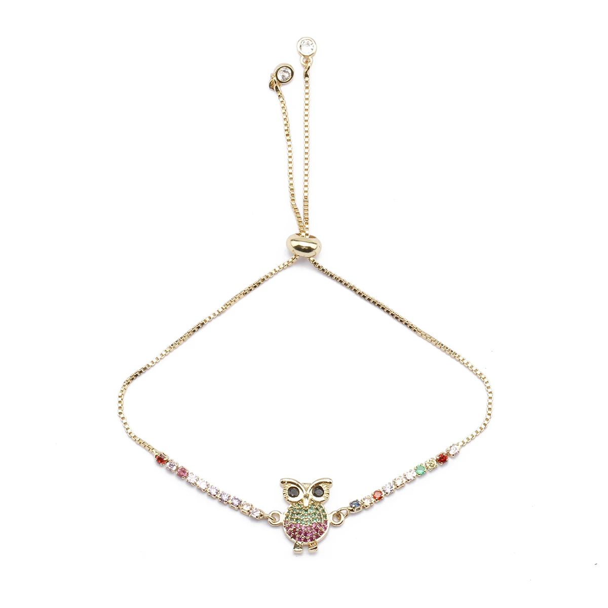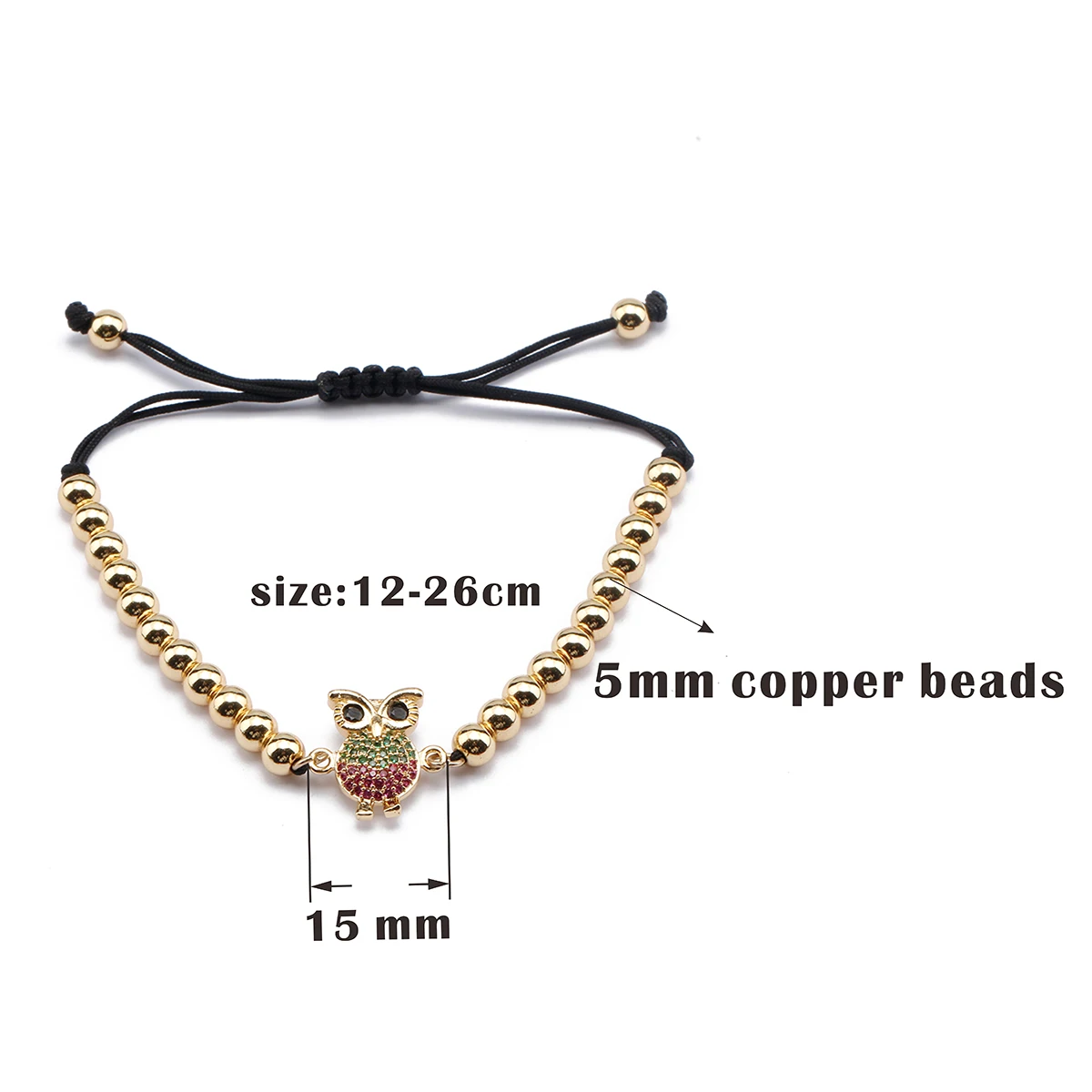 Название:AAA CZ браслет с подвеской в виде совы, красная веревка, позолоченная цепь из медных бусинок, милый браслет с рисунком птицы, регулируемый женский ювелирный подарок