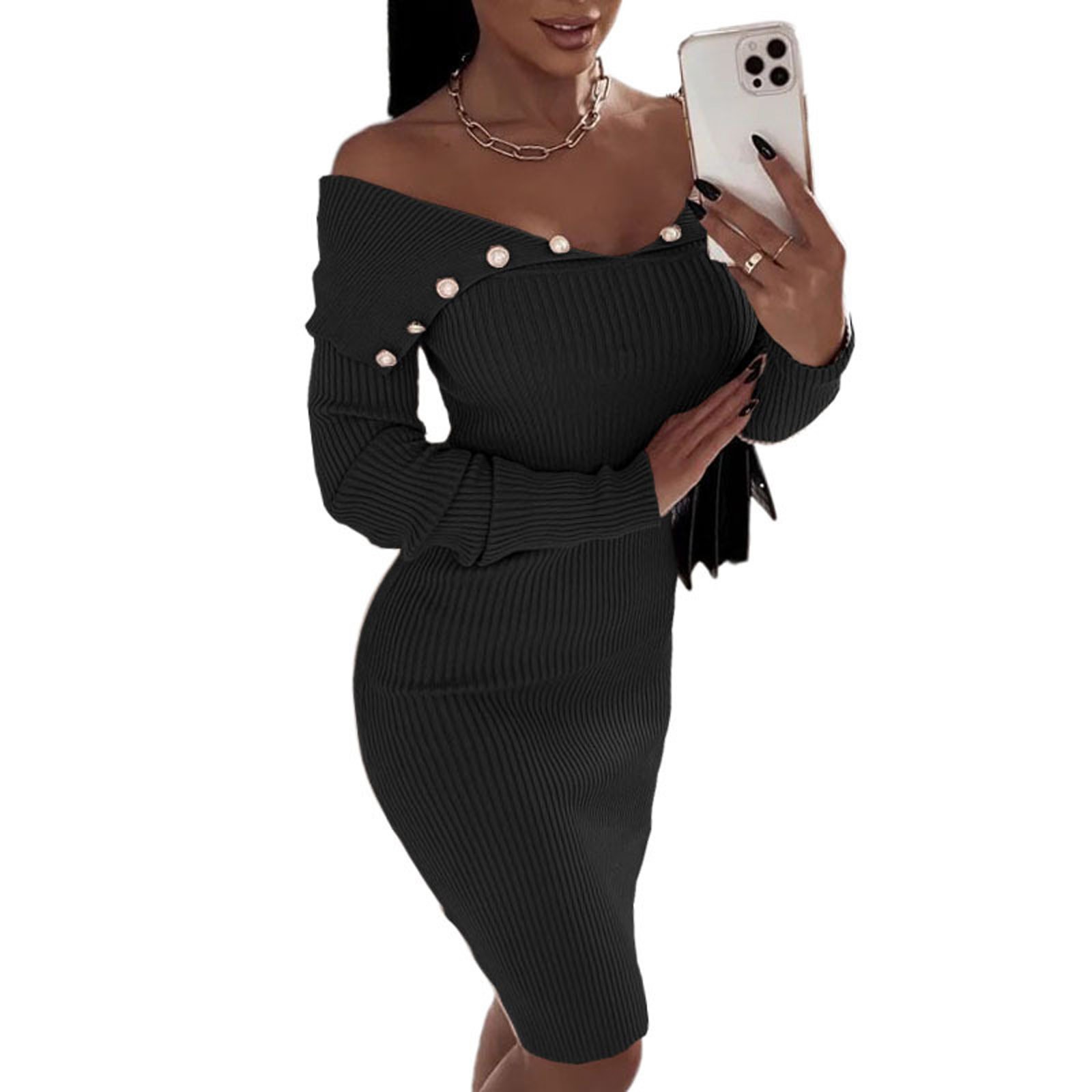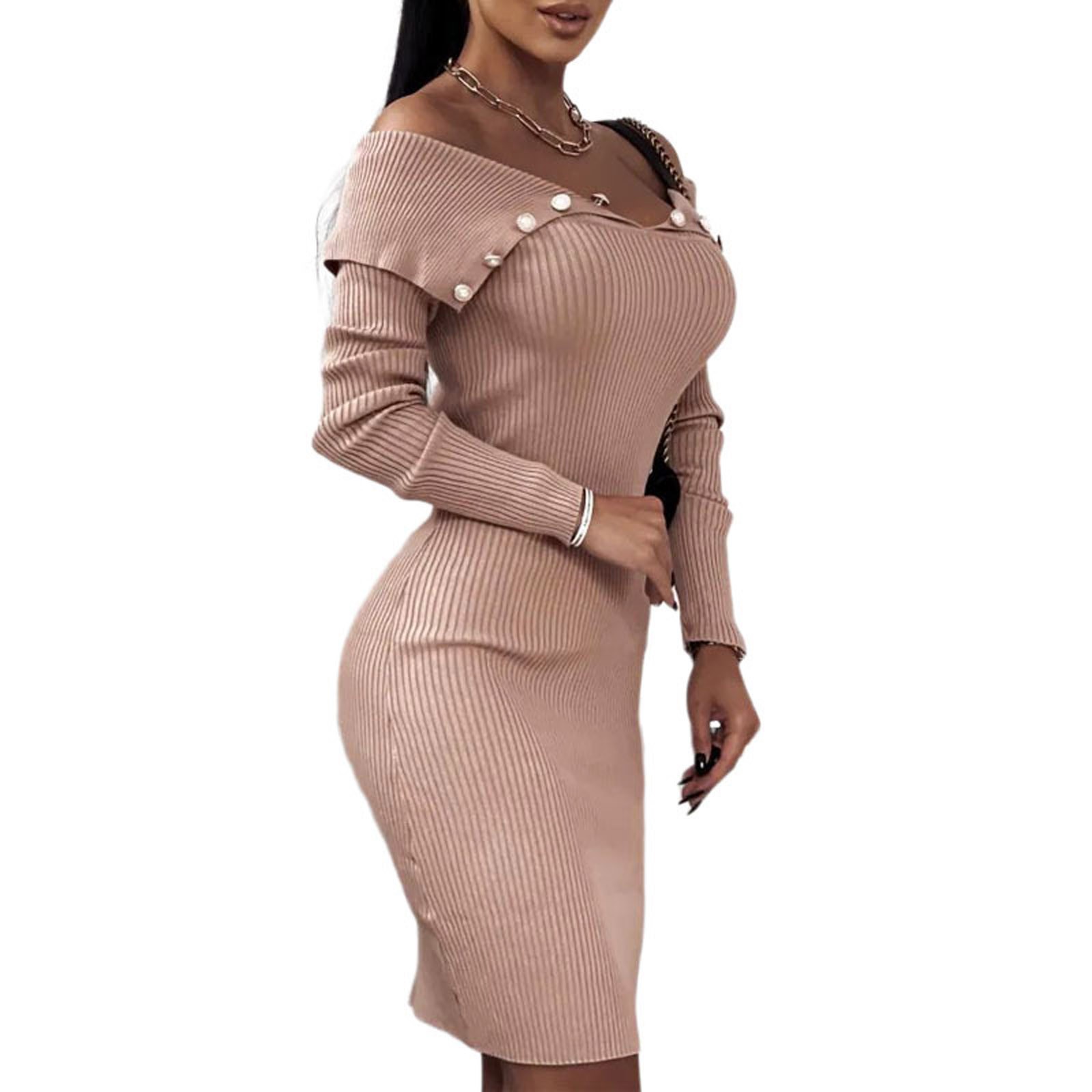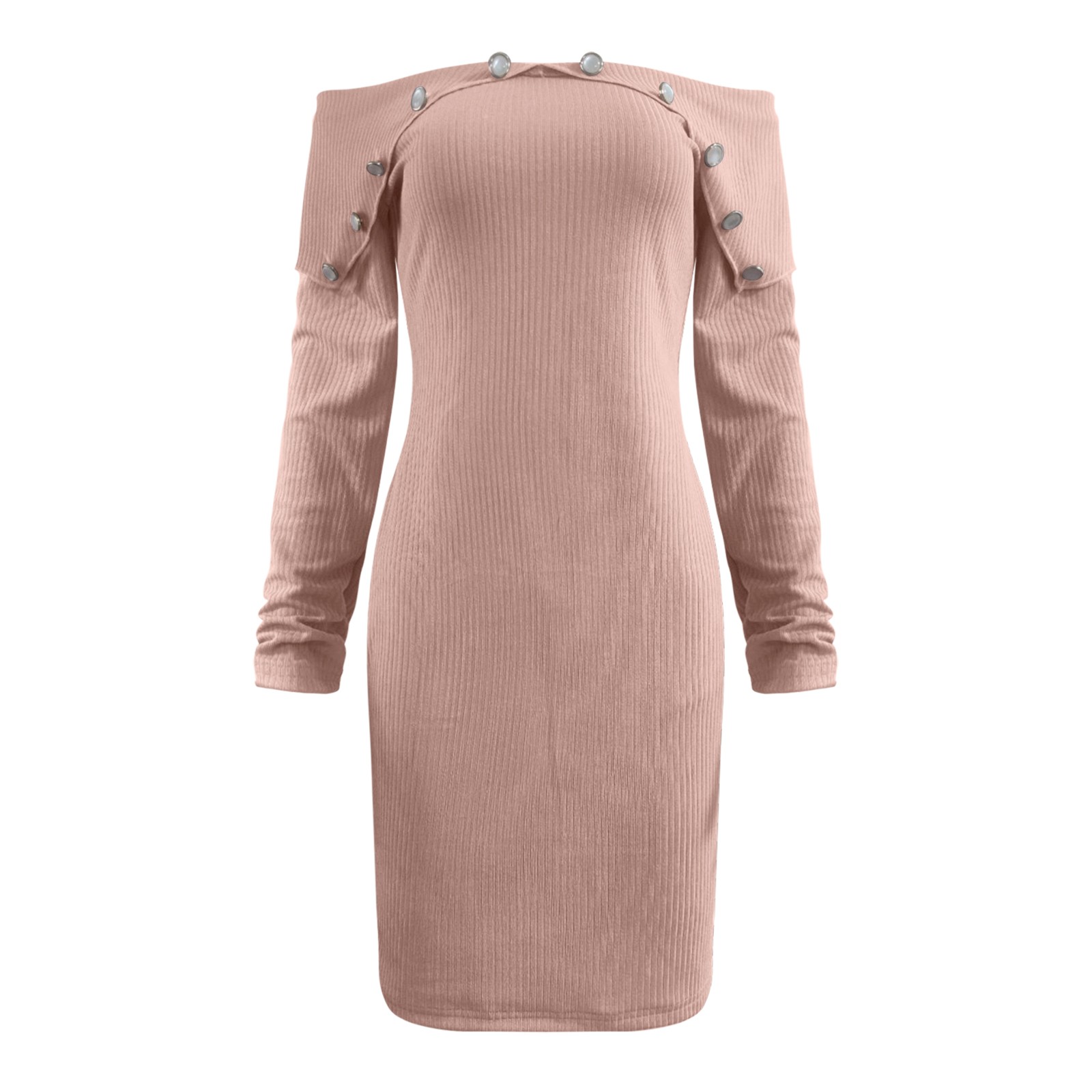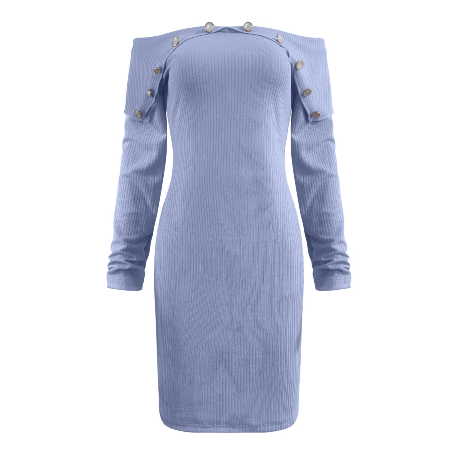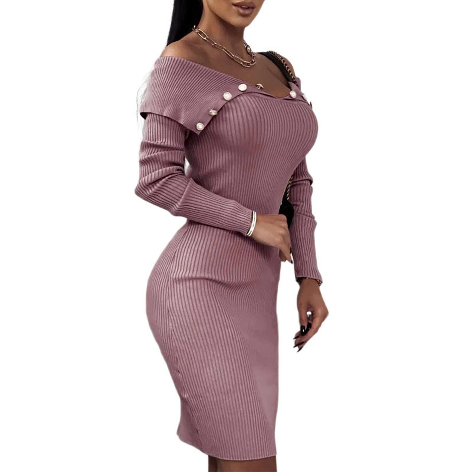 Модное женское свободное однотонное трикотажное платье с длинными рукавами и пуговицами