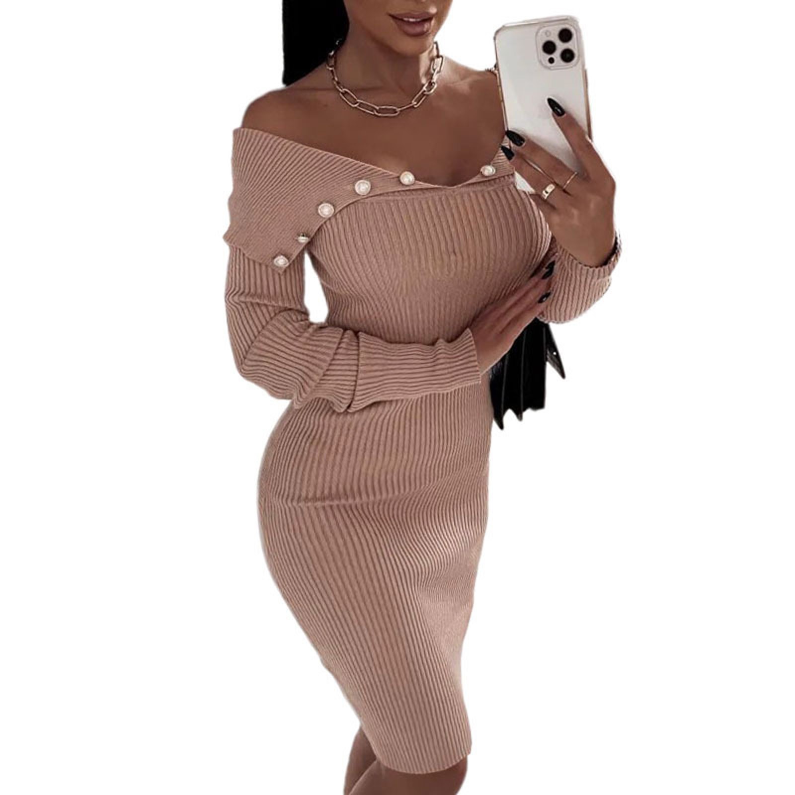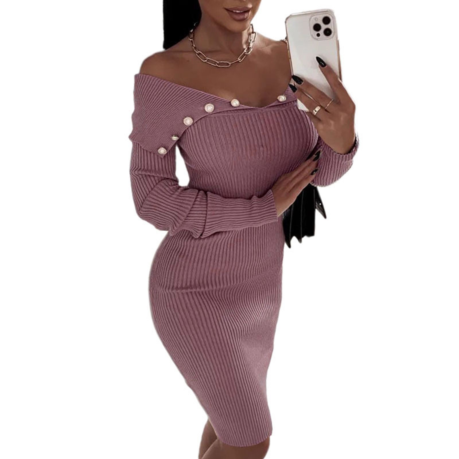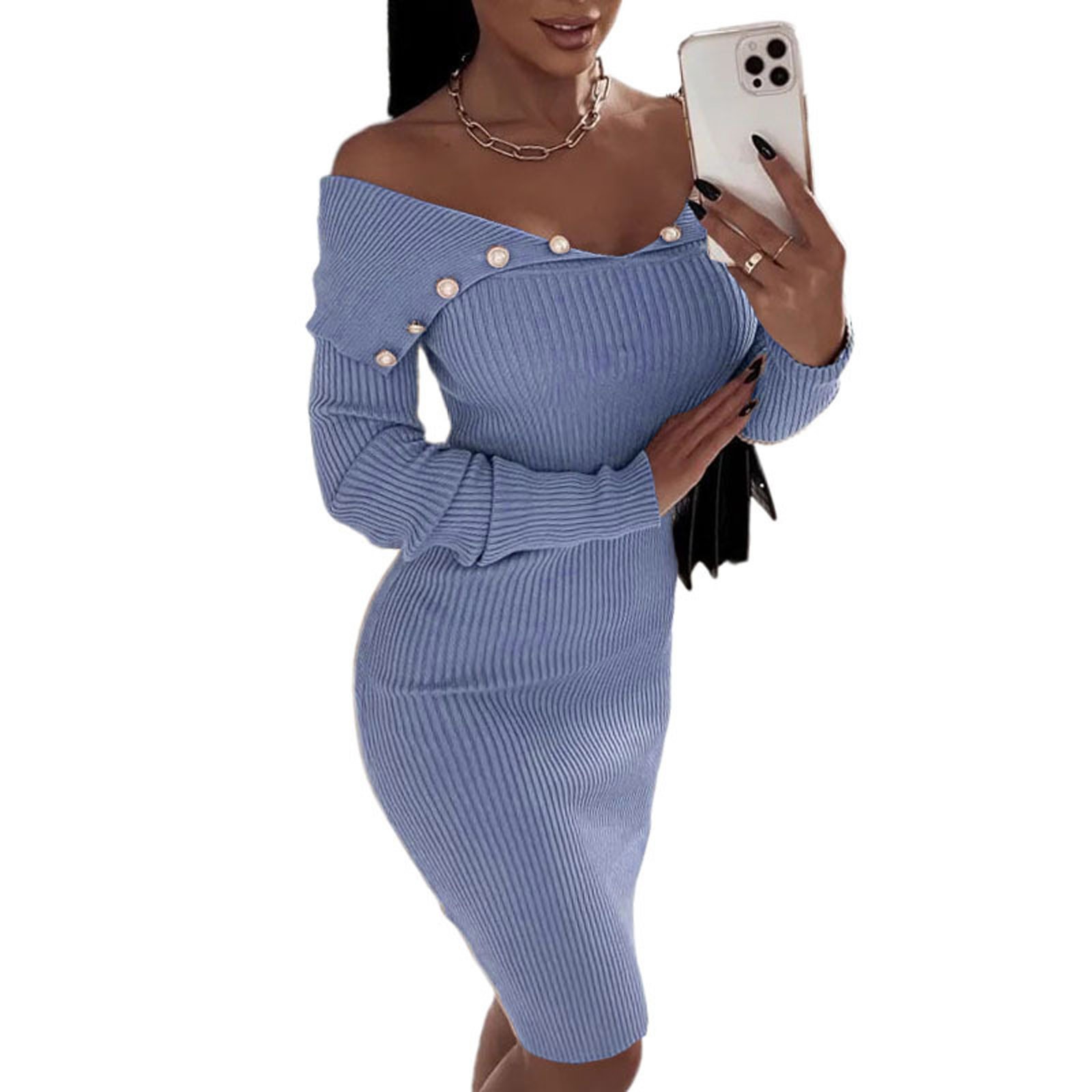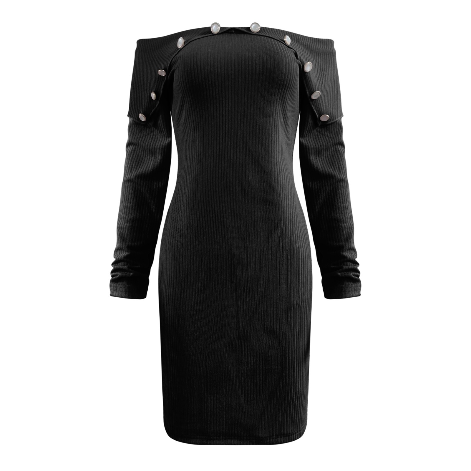 Модное женское свободное однотонное трикотажное платье с длинными рукавами и пуговицами
