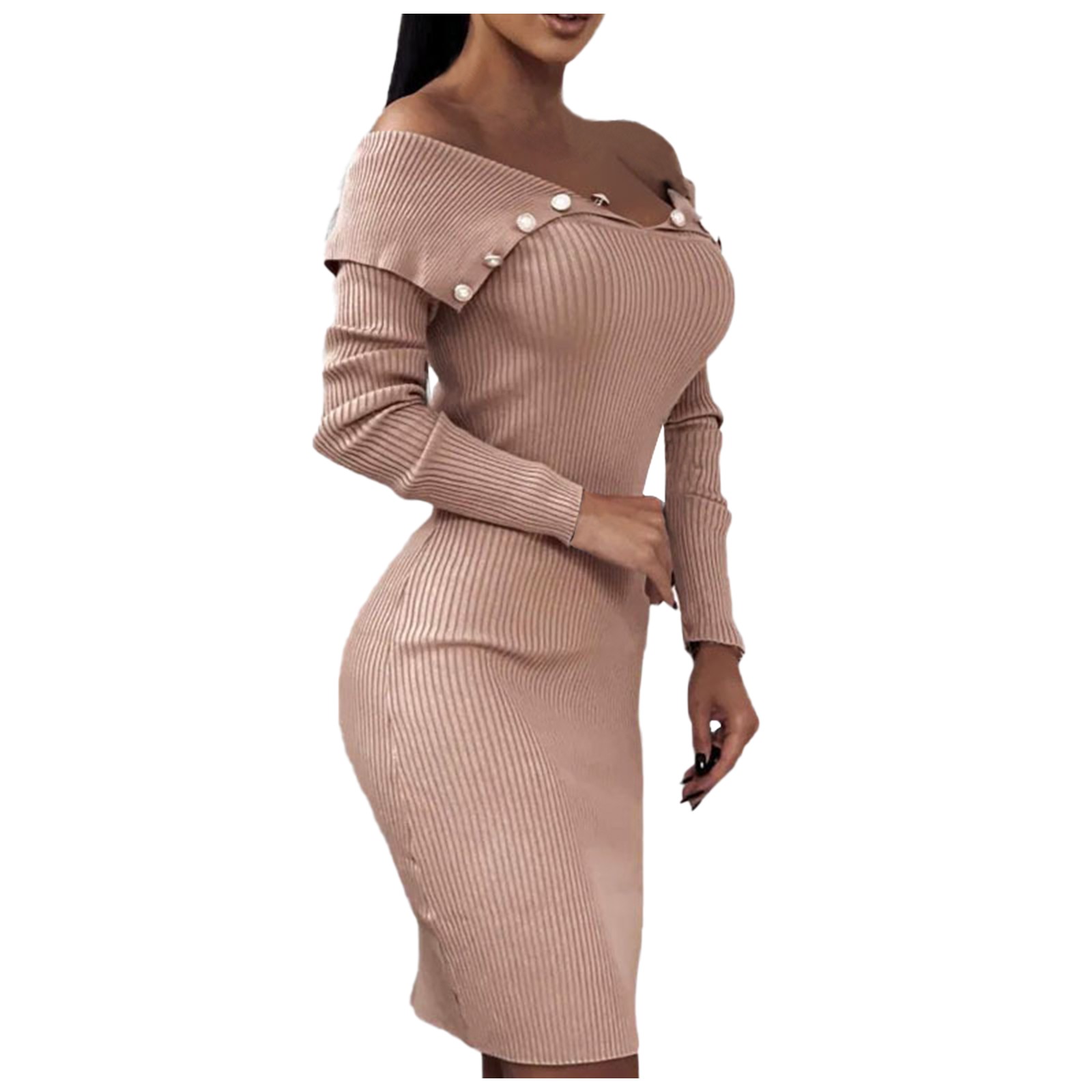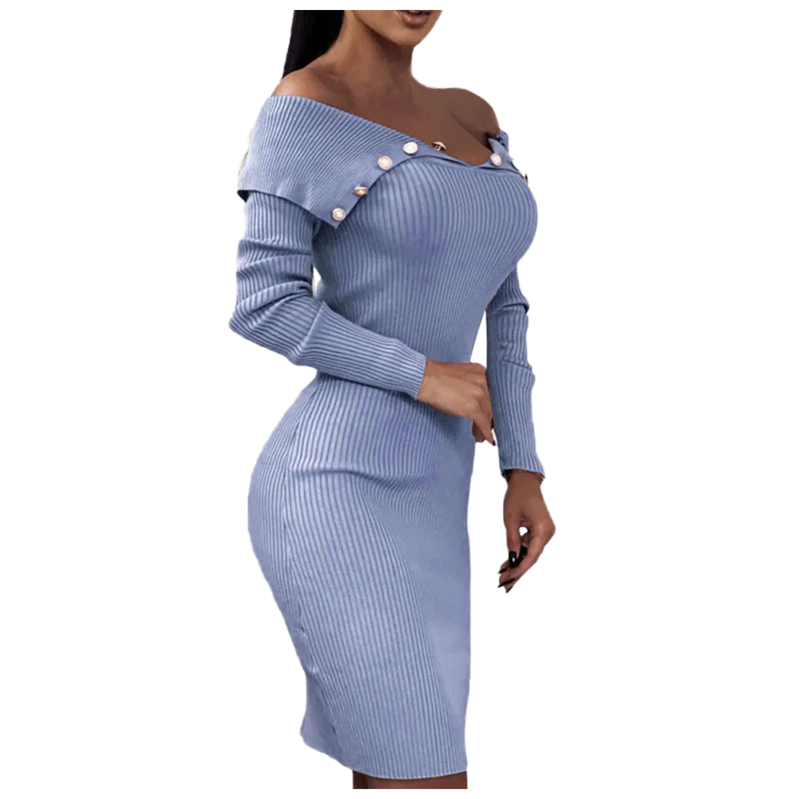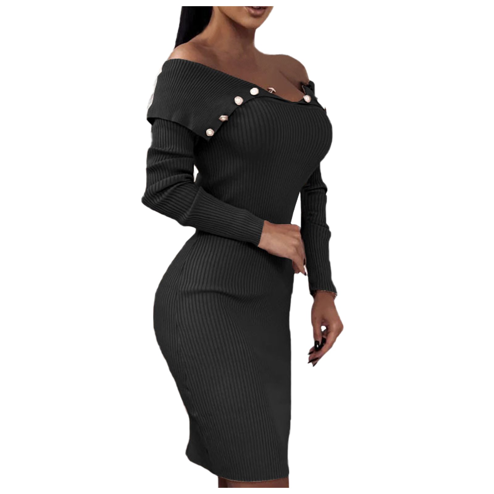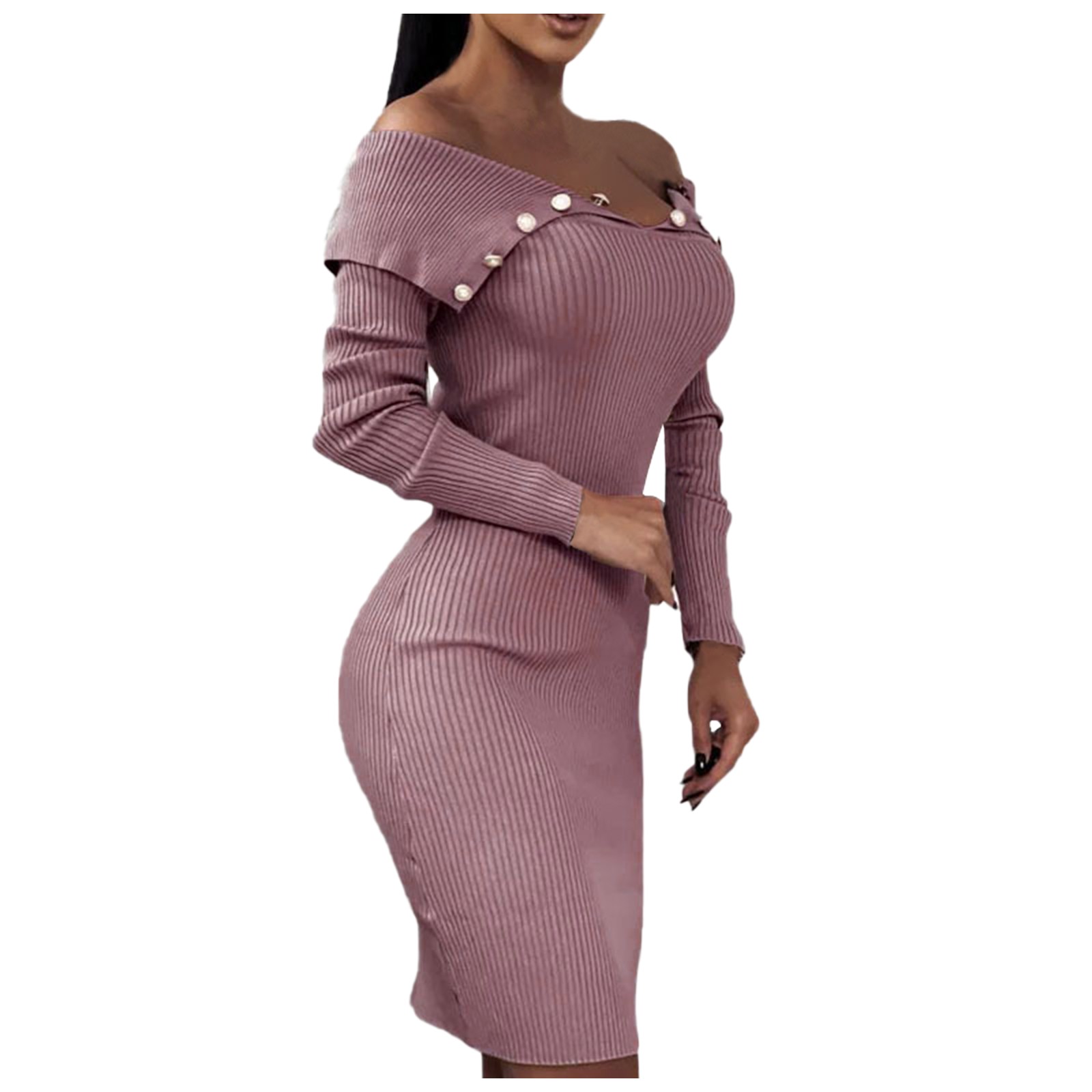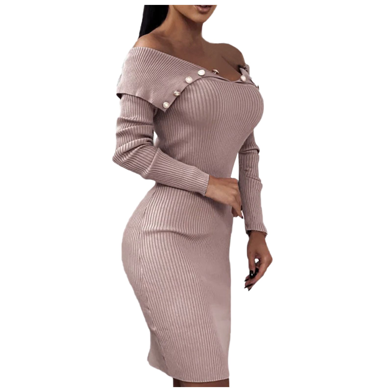 Модное женское свободное однотонное трикотажное платье с длинными рукавами и пуговицами