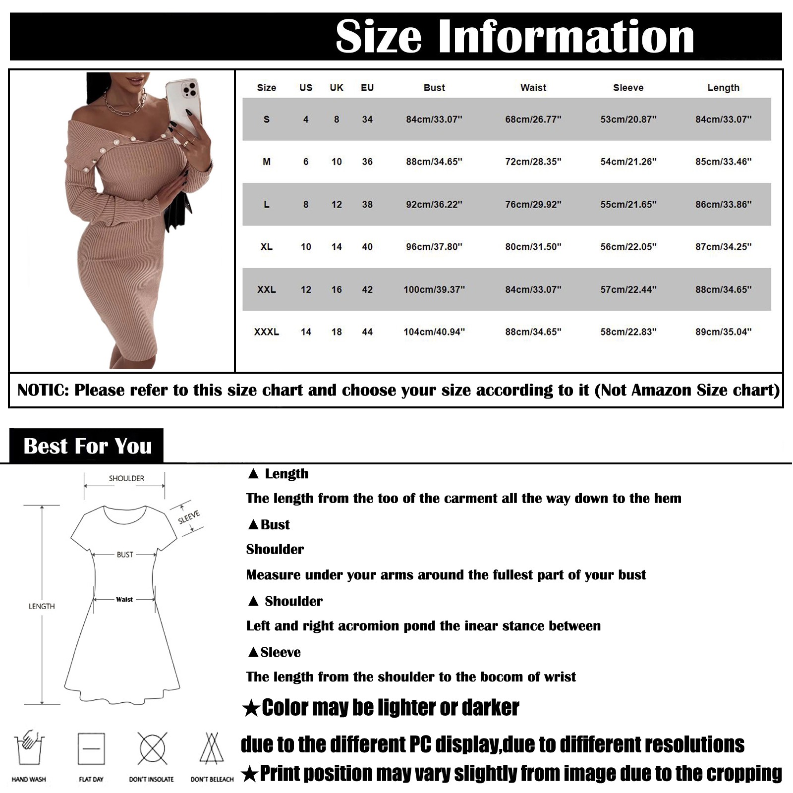 Мы гарантируем, что общий стиль, отображенный на фотографии, является достоверным, однако могут быть различия в том, как стиль появляется во время ношения. Это зависит от остальных физических параметров, таких, как: размер тела, фигура, пропорции конечностей, рост и т. д.