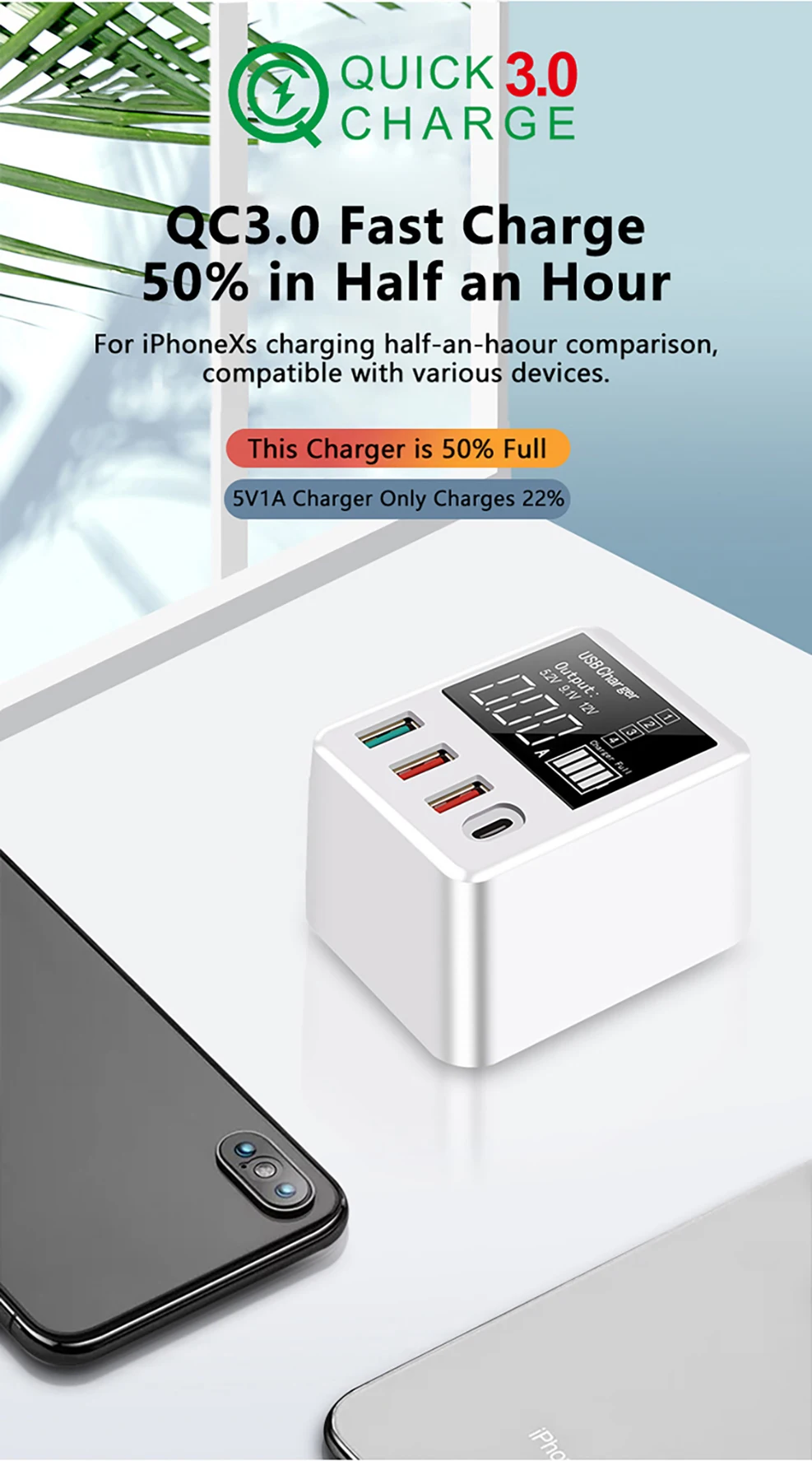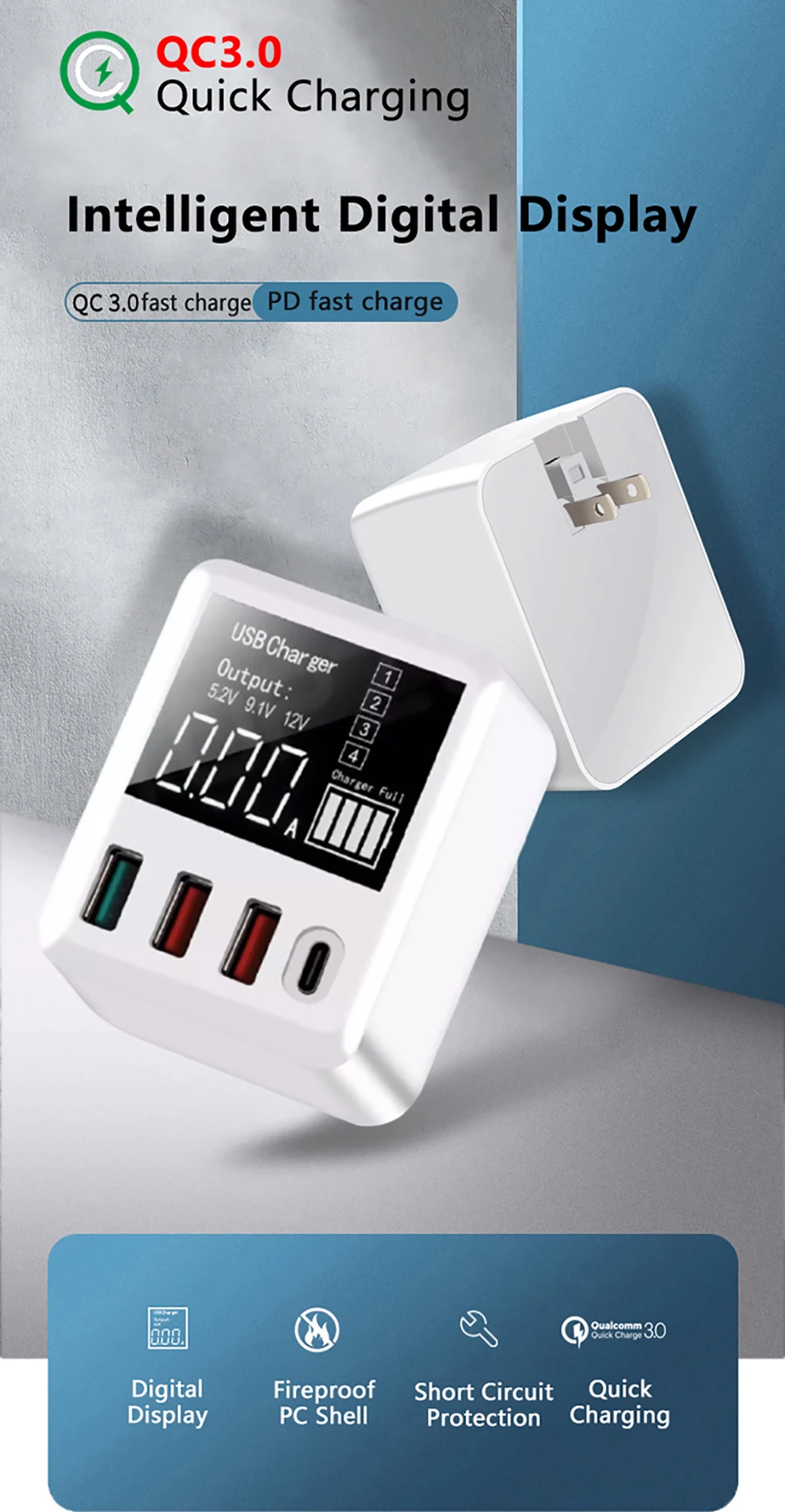 Выход QC3.0: 5V3.4A/9V2A/12V1.5A