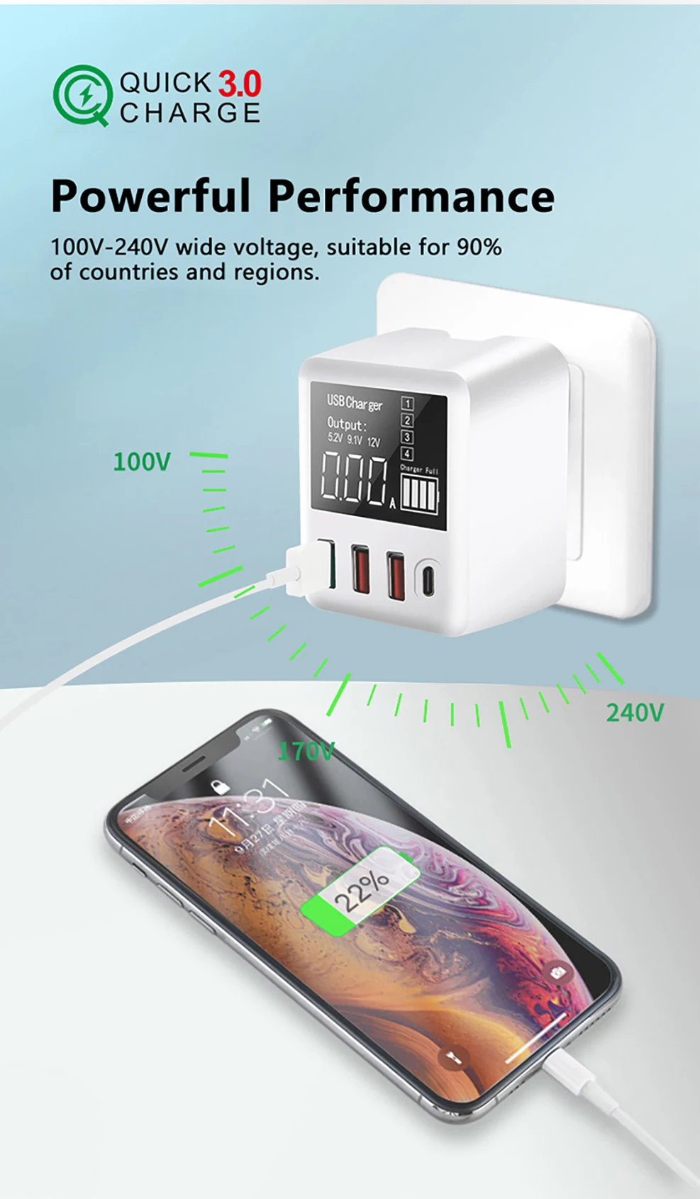 Выход QC3.0: 5V3.4A / 9V2A / 12V1.5A