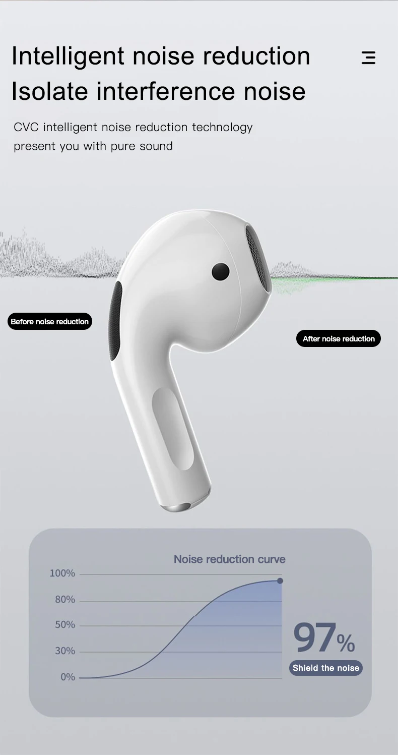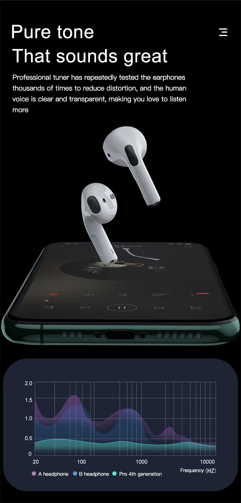 Pro 4 Bluetooth Headphones Wireless Headset Origianl Mini Earbuds Stereo For Airpoddings Pro 4 Noise Cancelling For Apple Xiaomi Huawei