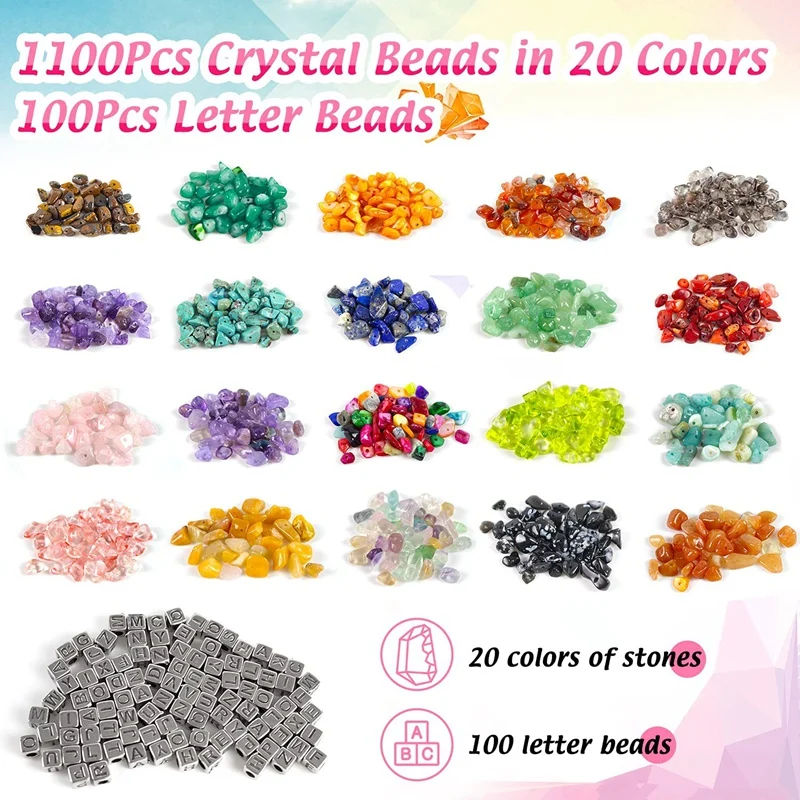 1100 gems: The crystal beads used for jewelry production are exquisite irregular fragments of stone beads, which are composed of various high-quality gems. Various colors will bring a beautiful visual impression to your beading and jewelry making kits.