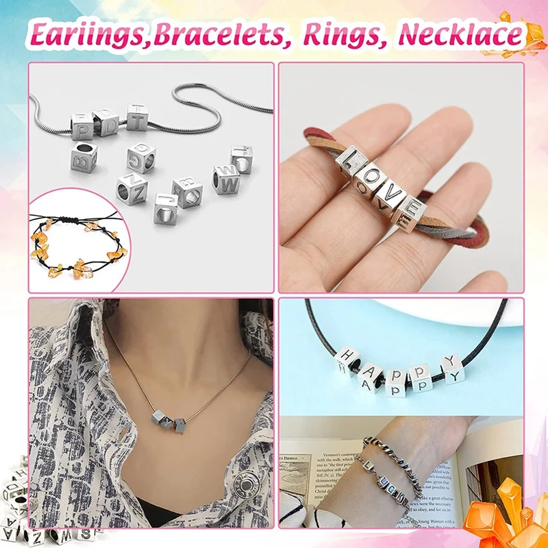 Meaningful alphabet beads: Whether you make necklaces, rings, earrings, brooches, pendants, friendship bracelets or other jewelry, this gem set can help you make them. By the way, DIY production will be more meaningful and memorable, because 100 letter beads can make a word or a name, which shows a special meaning to the one you love. Do it now!