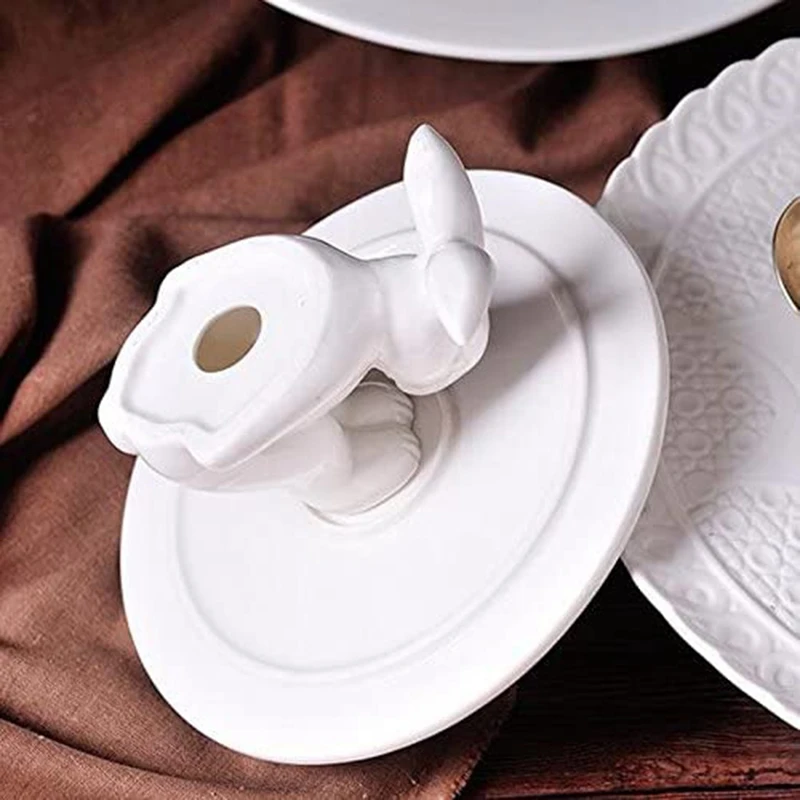 Bunny Rabbit Ceramic Plate,Dishes For Dessert Food Server Tray,Cute Cake Stand, Tableware Gift For Kitchenware Lovers