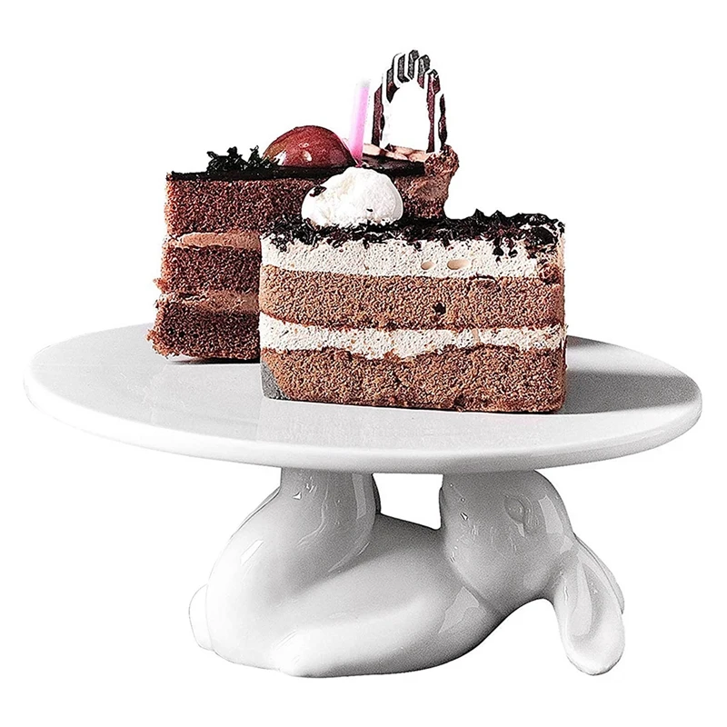 PREMIUM QUALITY: This white bunny design porcelain cake stand can be used to serve cake, desserts, snacks or beverages. Perfect for any occasion.