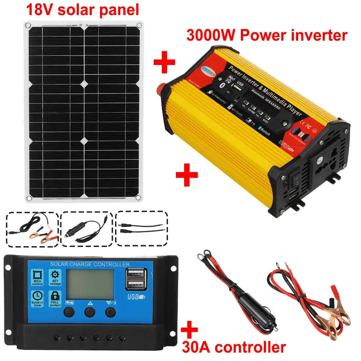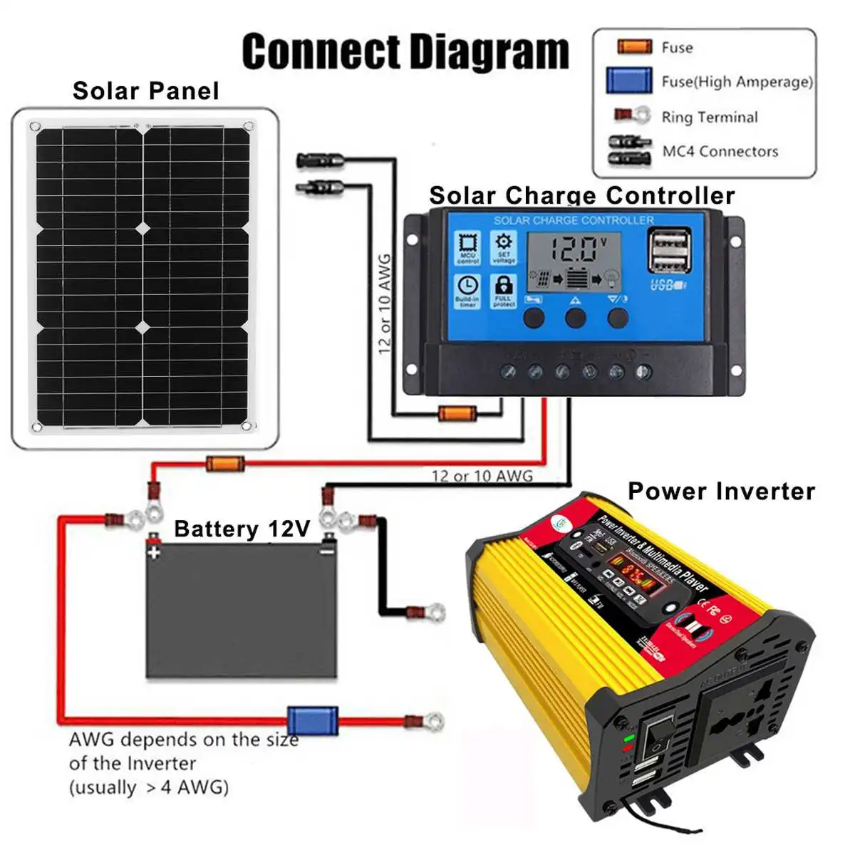 ●【 3000W Мощность inverter】Автомобильный инвертор с 2 usb-портами и выходом переменного тока. Импульсная мощность: 3000 Вт, инвертор питания поставляется с бесплатной прикуривателем и 2 зажимами для батарей, Обеспечивая непрерывную мощность 300 Вт, максимальная мощность 3000 Вт (убедитесь, что общая номинальная мощность подключенных устройств ≤ 300 Вт).