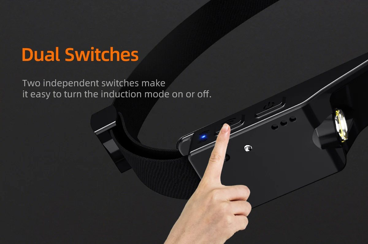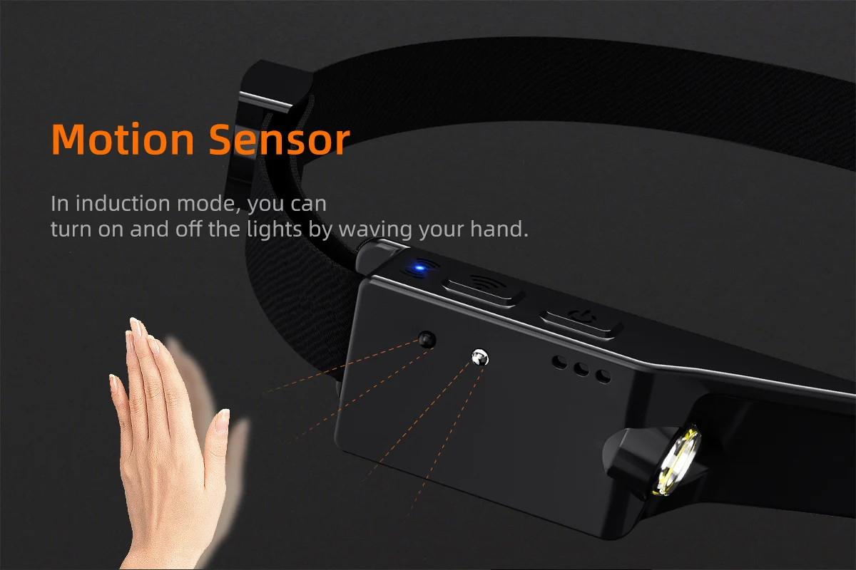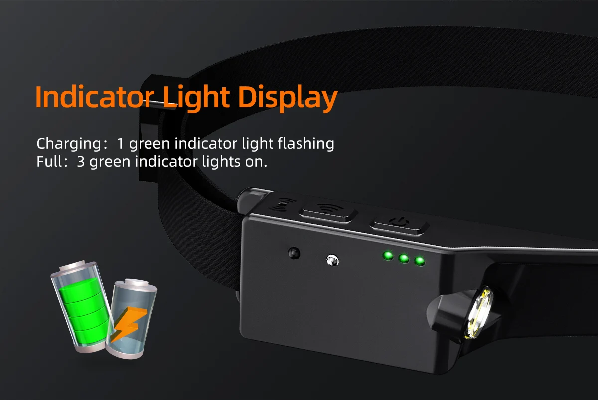 2. В выключенном состоянии, нажмите правой кнопкой мыши датчик кнопку чтобы включить светодиоднyю подсветку с низким уровнем светильник режим и включите функцию датчика, соответствующий индикатор светильник s, продолжайте нажимать на шестерню (боковой низкий светильник-боковой сильный светильник-передний белый светильник-передний красный светильник-ВЫКЛ) для циклического блока.