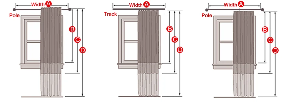 2.Curtains length= B/ C/ D(up to your window height).