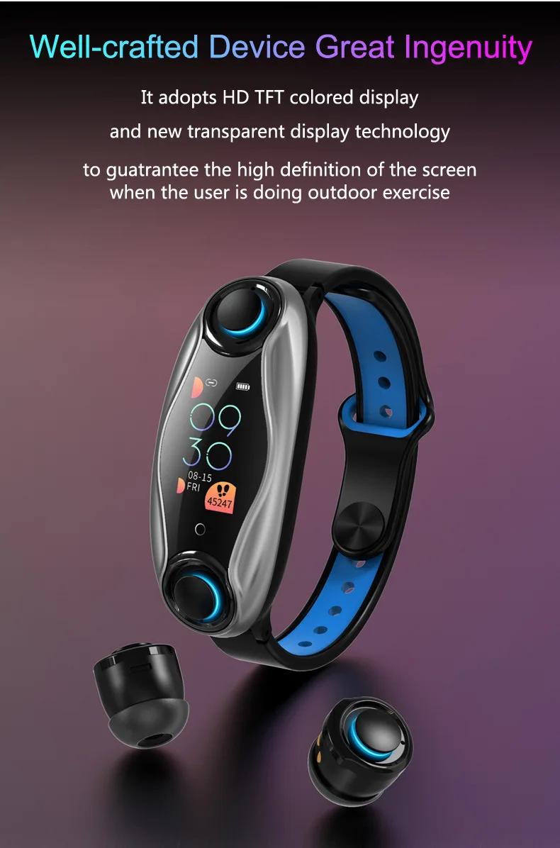 Умные браслеты + наушники BT, одно устройство, две функции.
