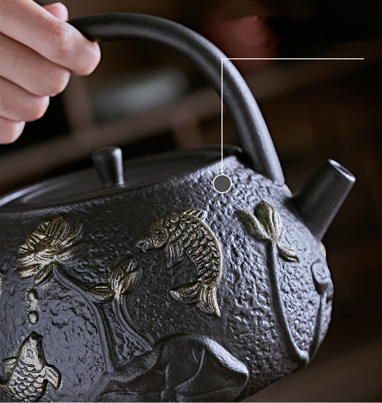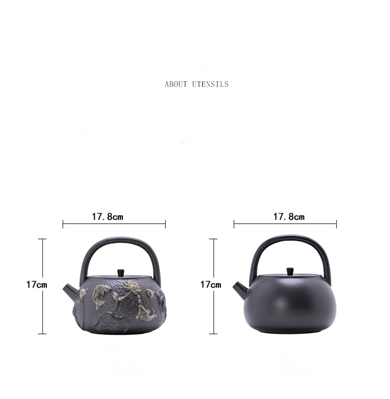 1200 мл китайский черный керамический чайный горшок с ручкой рыба над воротами дракона/однотонный чайный горшок большой вместимости для чая чайник креативный подарок