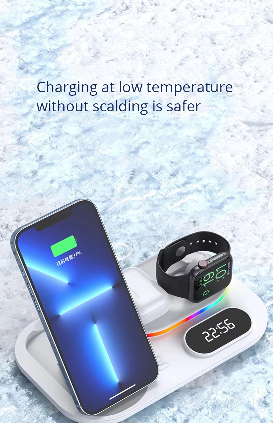 3 в 1 цифровые часы беспроводные зарядные устройства подставка для iPhone 13 Airpods 3 iwatch Беспроводное зарядное устройство многоугольный регулируемый держатель для телефона