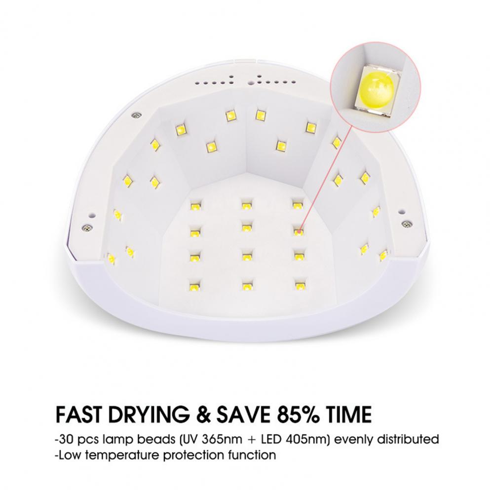 Наша лампа для ногтей имеет 30 светодиодов и функцию инфракрасного датчика, который может быстро высушить лак для ногтей и другой клей для ногтей, а также не ослепительно и безвредно для вашей кожи или глаз. Экономия времени и экономия труда, это позволяет делать маникюр дома, не ходя в маникюрный салон.