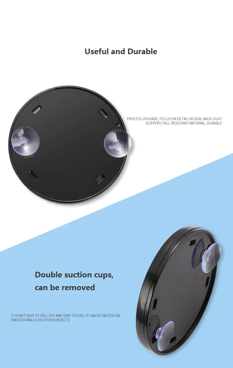С двумя присосками, которые делают зеркало можно зафиксировать где угодно гладким.