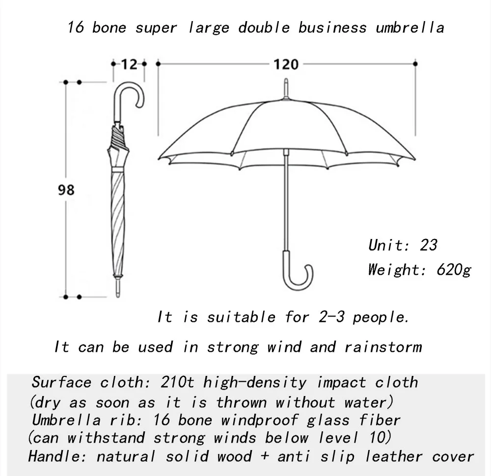 Umbrella handle material: solid wood + Leather