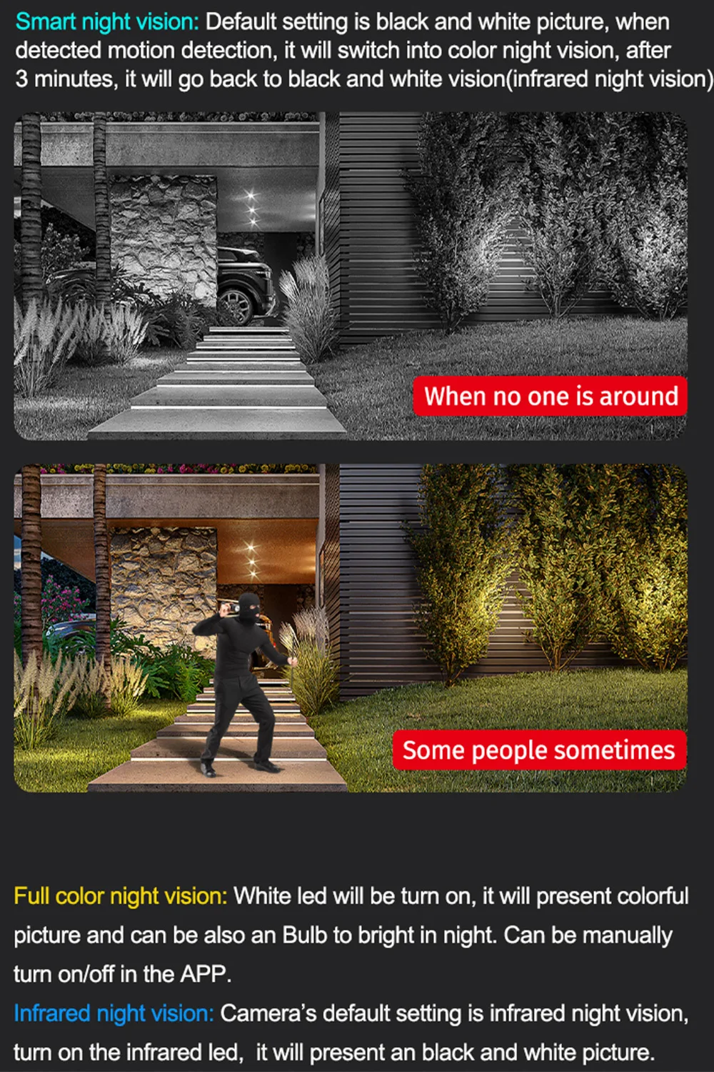 -Интеллектуальное оповещение: ПИР срабатывает с сигнальным снимком, push-уведомления приложения и запись будильника