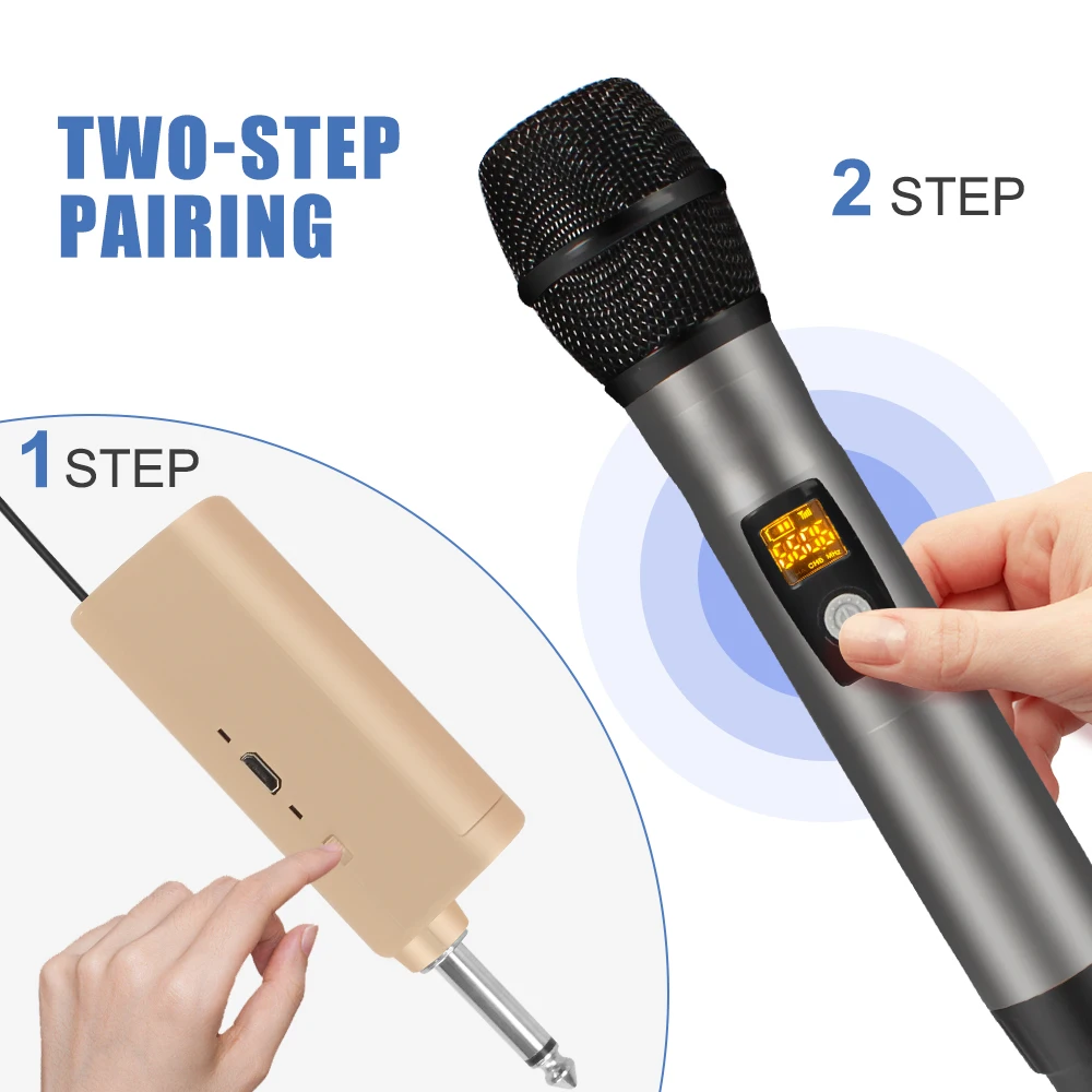 Широкое использование:Стабильный сигнал, рабочий диапазон 262ft (линия видимости), подходит для использования в помещении и на открытом воздухе, например, для Домашнего Караоке, церкви, свадьбы, конференции и небольших выступлений на сцене.