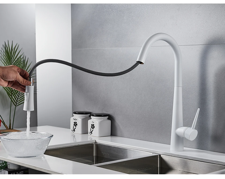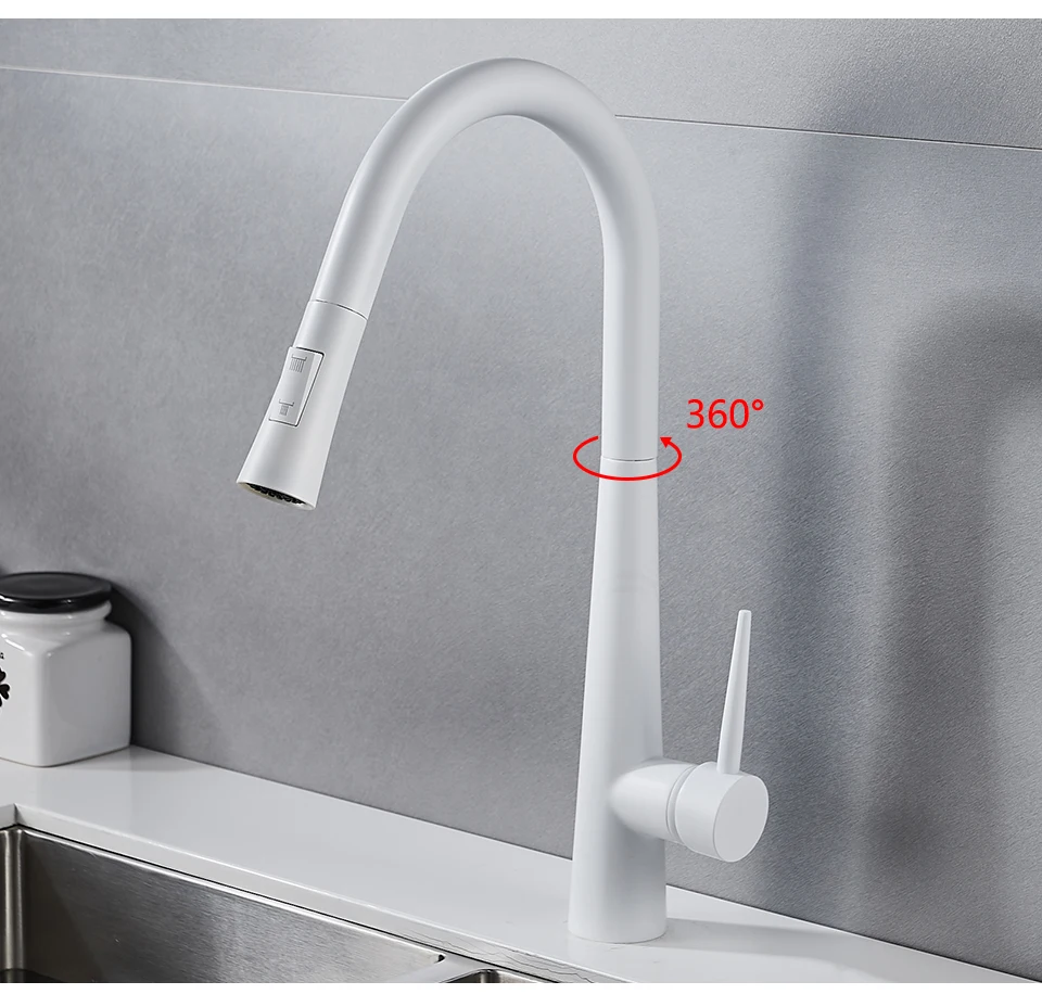 Смеситель для кухни из латуни, лакированный белый кран для горячей и холодной воды, смеситель для раковины, кран с одним отверстием, ручка, два способа, носик, смеситель