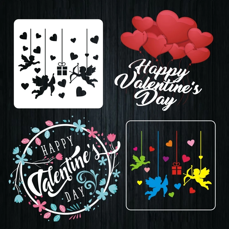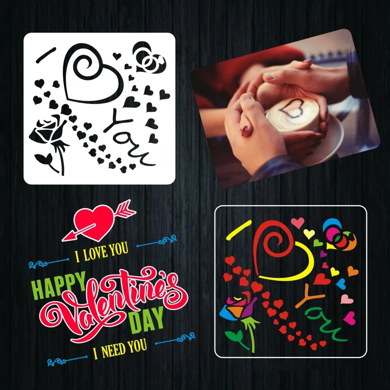 Дизайн ко Дню Святого Валентина: эти пластиковые трафареты разработаны по-разному, включая День Святого Валентина и много других слов о День Святого Валентина, обеспечивают достаточный шаблон для вашего выбора, набор милых шаблонов для рисования на День святого Валентина.