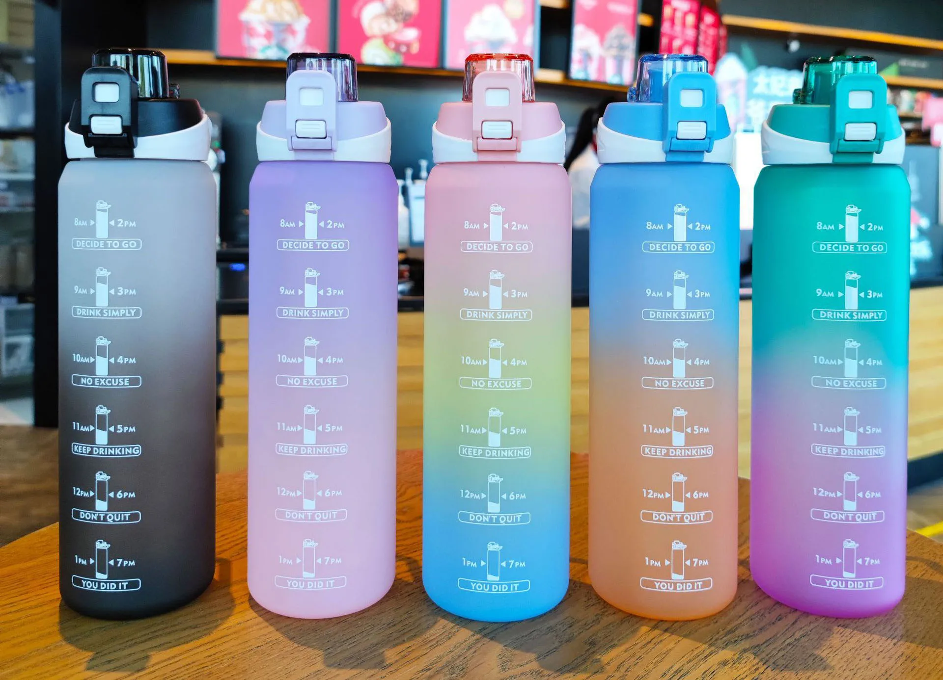 Новая 1000 мл бутылка для воды 32 унций матовая Радужная градиентная пластиковая Спортивная бутылка для напитков для занятий спортом на открытом воздухе, для занятий фитнесом, чашка для воды со шкалой времени