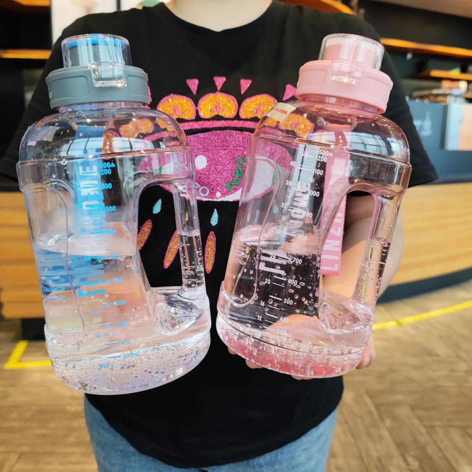 1500 мл бутылки для воды большой емкости пластиковые прозрачные Спортивные бутылки для напитков тренажерный зал фитнес тон чашка с портативной ручкой и веревкой