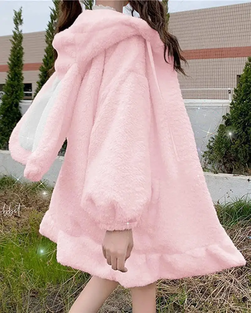 2. Особенности: Kawaii, animal, rabbit, худи для девочек, плиссированный подол, капюшон на молнии и молнии, милый дизайн, повседневный стиль, длинные рукава, большой размер, новая толстовка с капюшоном.