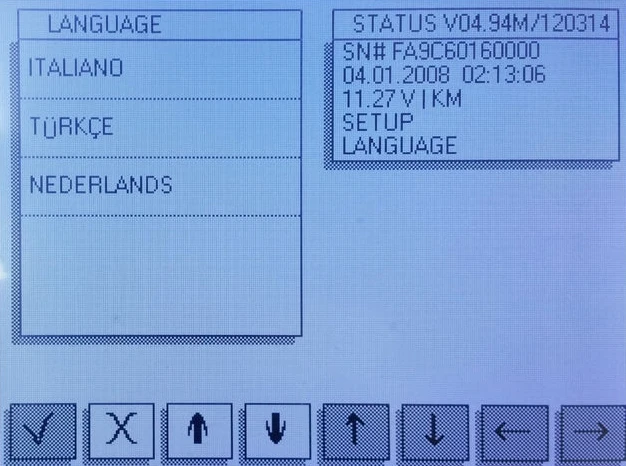Это меню, где настройки на вашем DigiProg могут быть изменены. Язык, пароль, яркость, громкость и время/дата могут быть установлены и изменены в этом меню. Вы также можете изменить, работает ли ваша машина в километрах или милях.