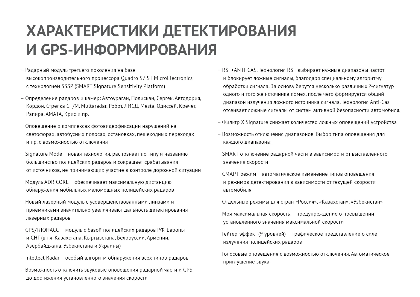 Smart mode, in which there is no unnecessary sound support, distracting attention from the road. A key feature of the smart mode is the ability to customize individually the detection options, alert range and audio.