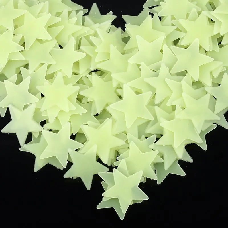100pcs 3D Luminous Fluorescent Stars Glow In The Dark Wall Stickers For Kids Baby Shower Birthday Party Ceiling Home Decoration