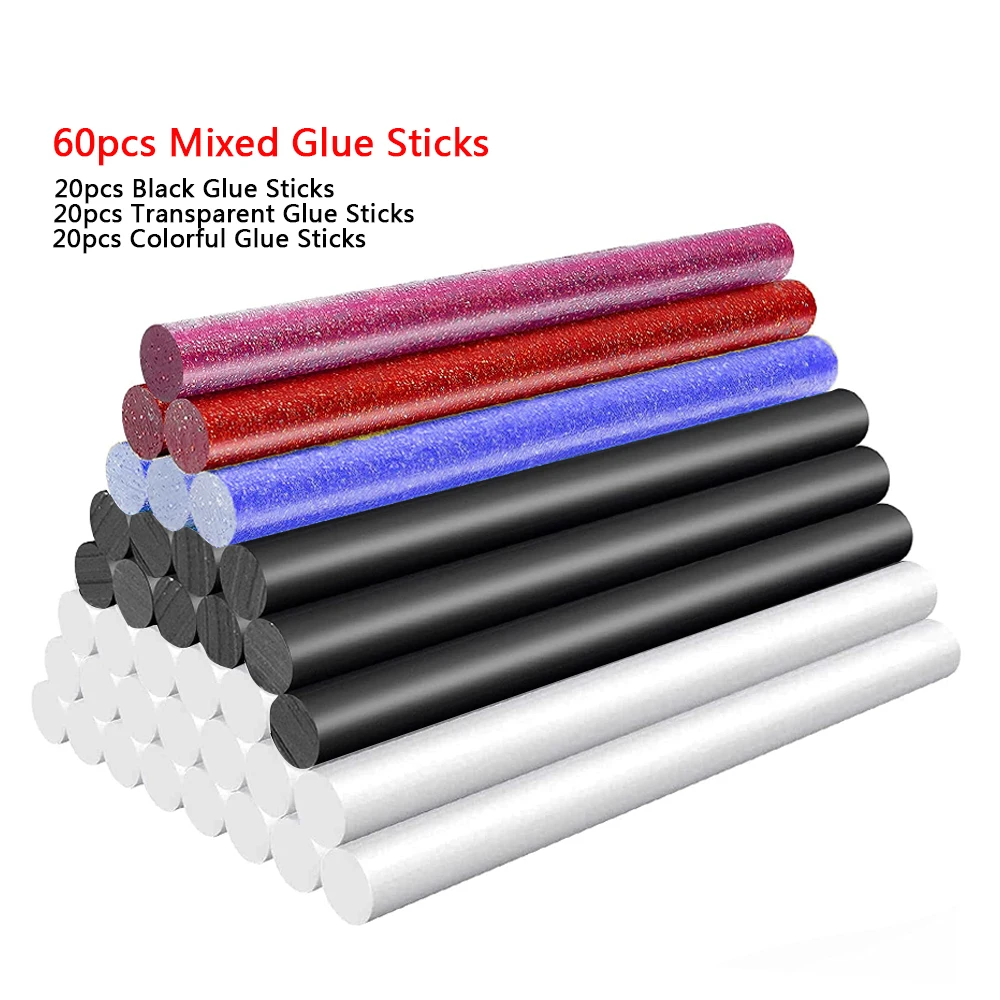 60pcs/set Mixed Hot Melt Glue Sticks(20pcs*Black+20pcs Transparent+20pcs Colorful-Glitter )